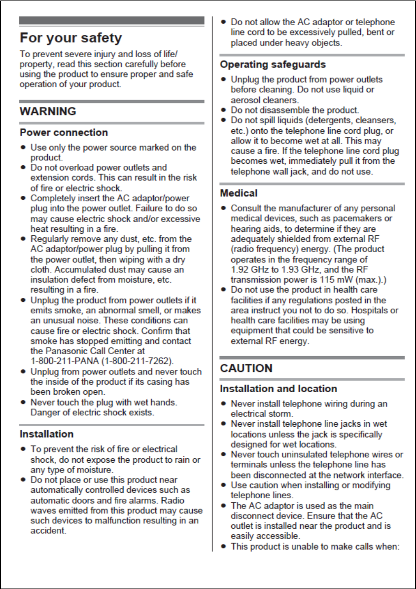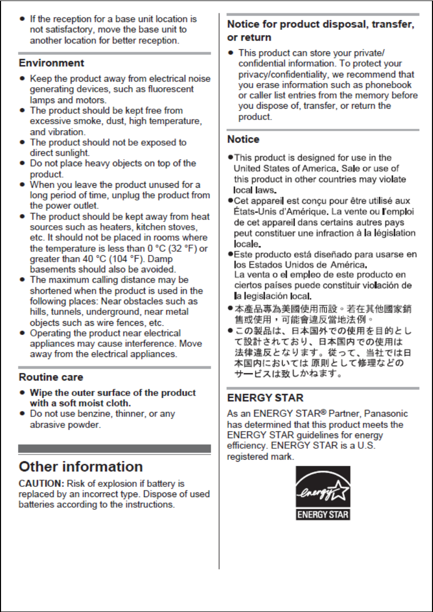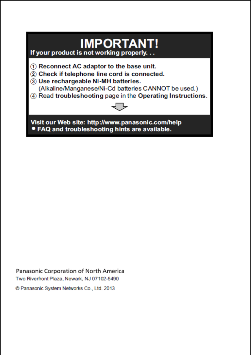 Panasonic of North America 96NKX-TGC220 DECT 6.0 Base User Manual For TA manual TGC220 USA