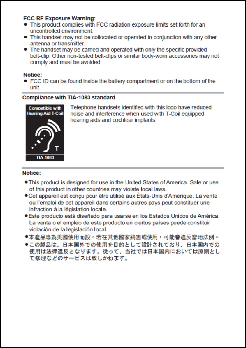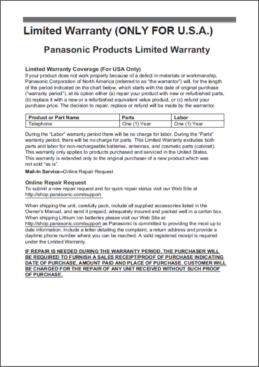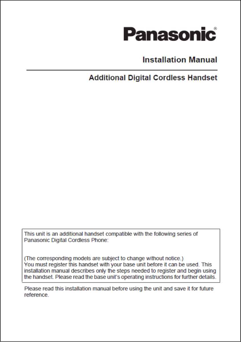 Panasonic Corporation of North America DECT 6.0 Handset For TA manual TGFA50 USA 10 31