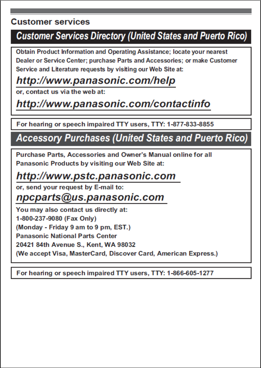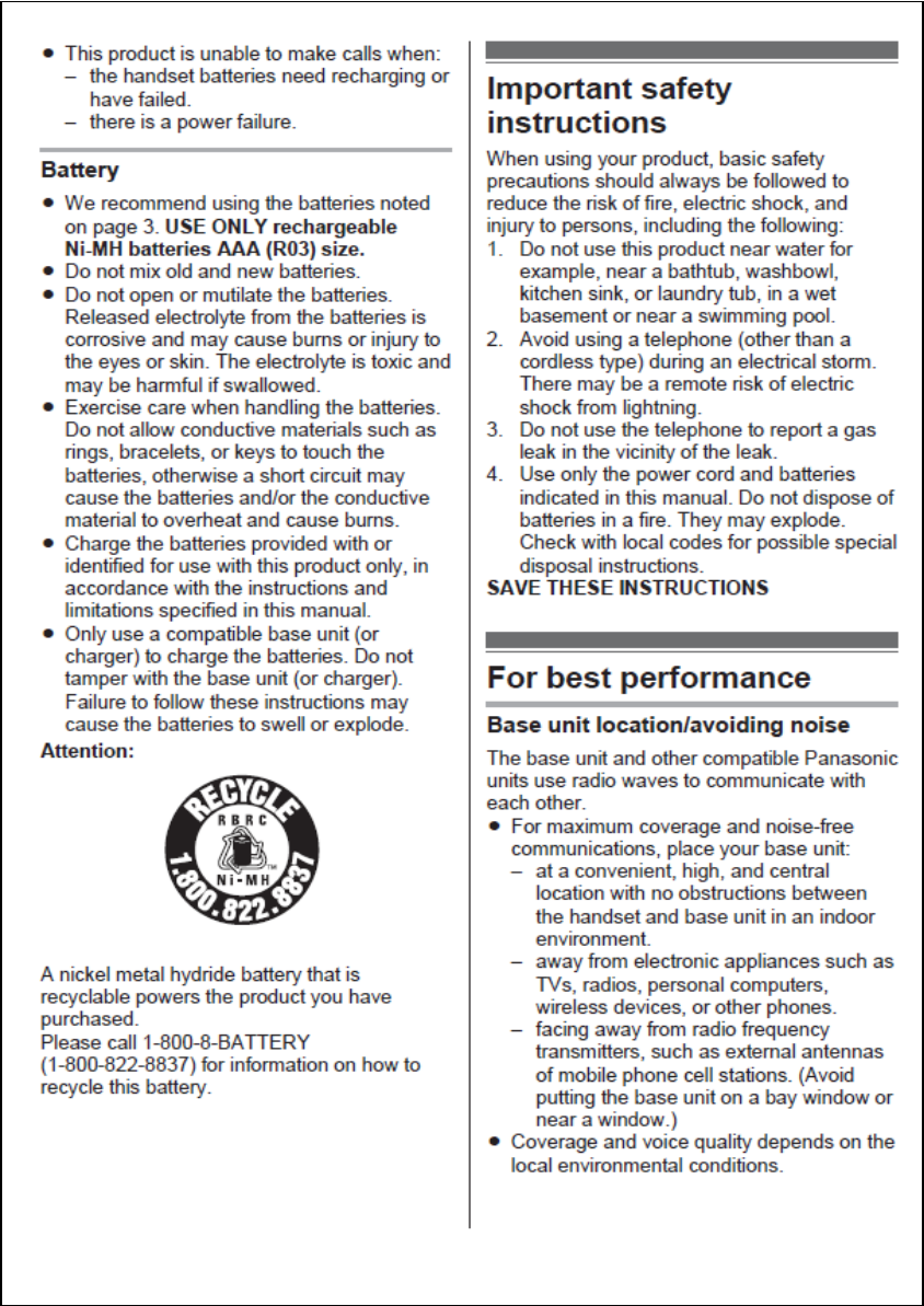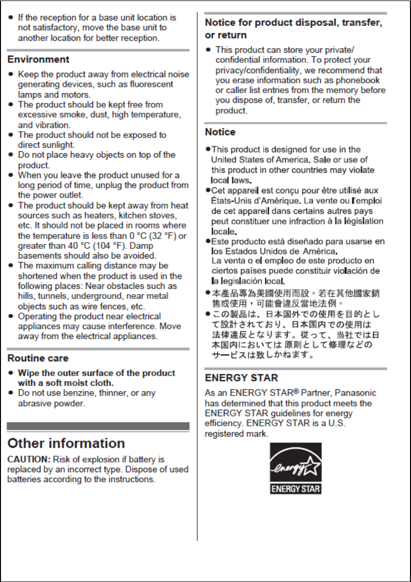 Panasonic of North America 96NKX-TGH220 DECT 6.0 Base User Manual For TA manual TGH220 USA