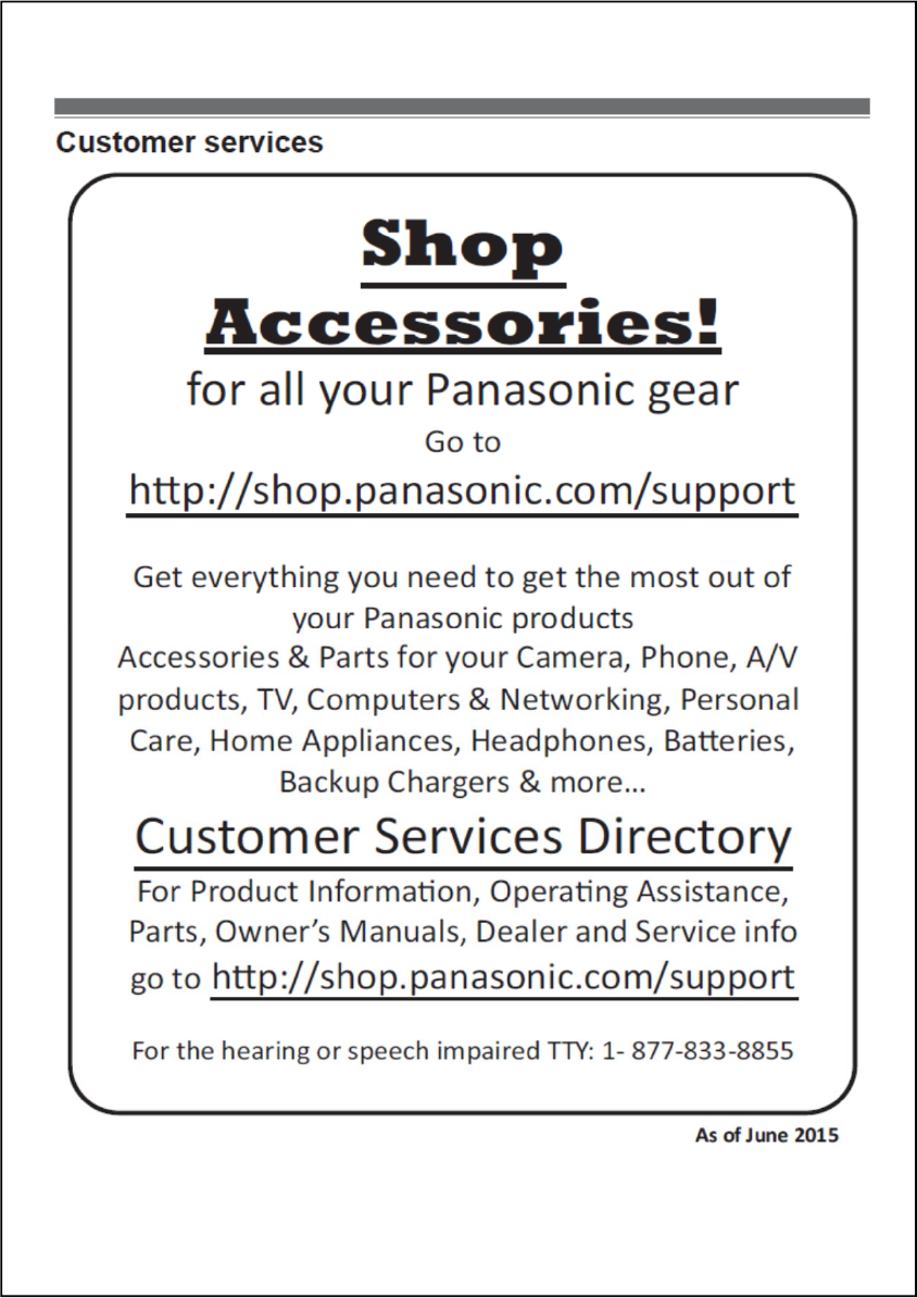 batteries ・To order, please visit http://shop.panasonic.com/support