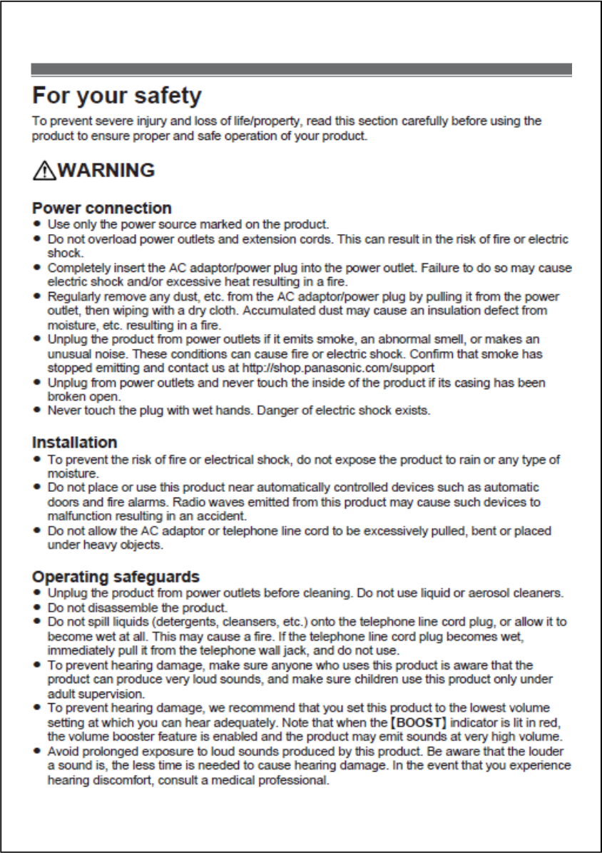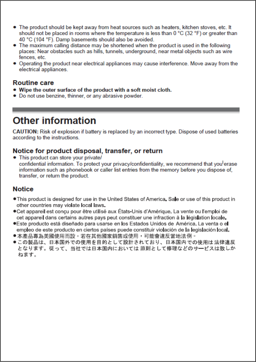 Panasonic Corporation of North America DECT 6.0 Base with BT For TA manual TGM430 USA 1 21