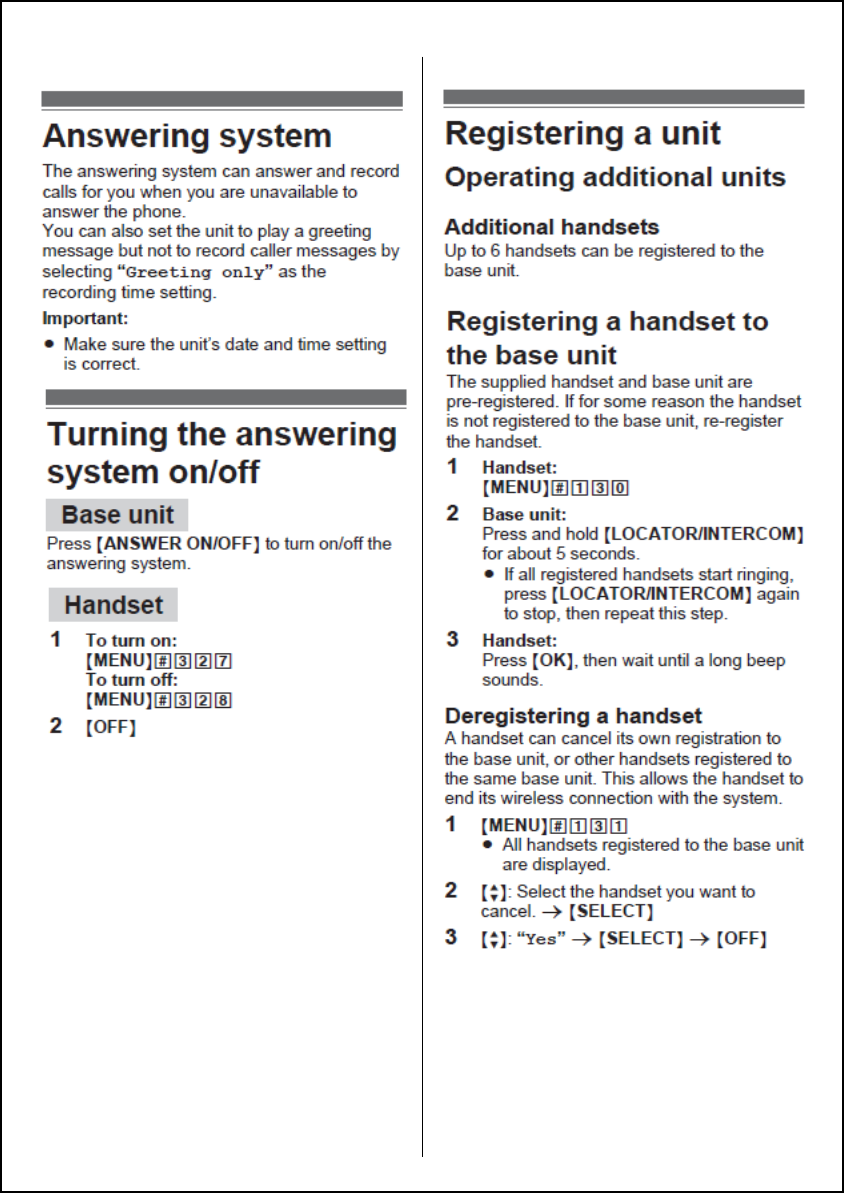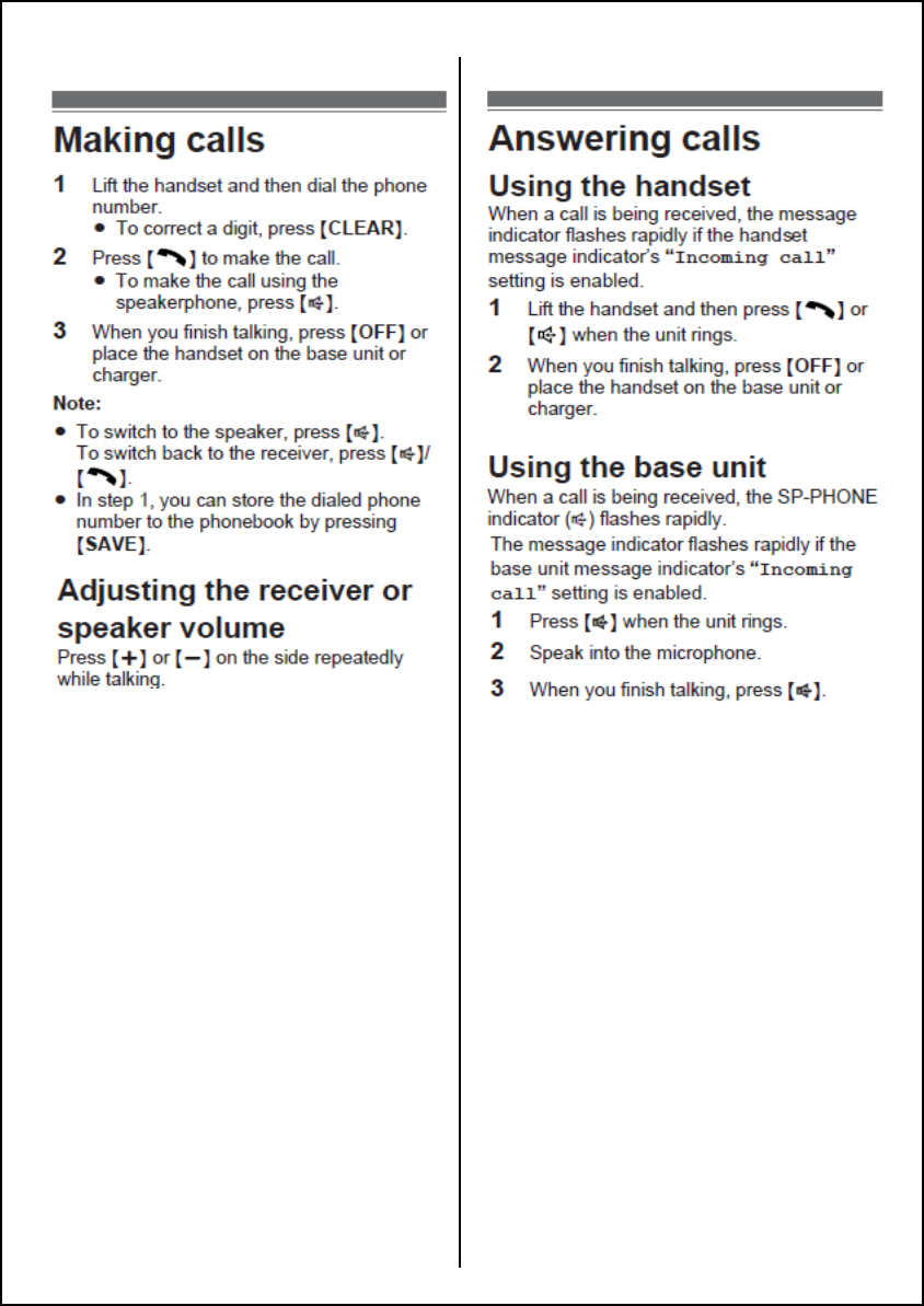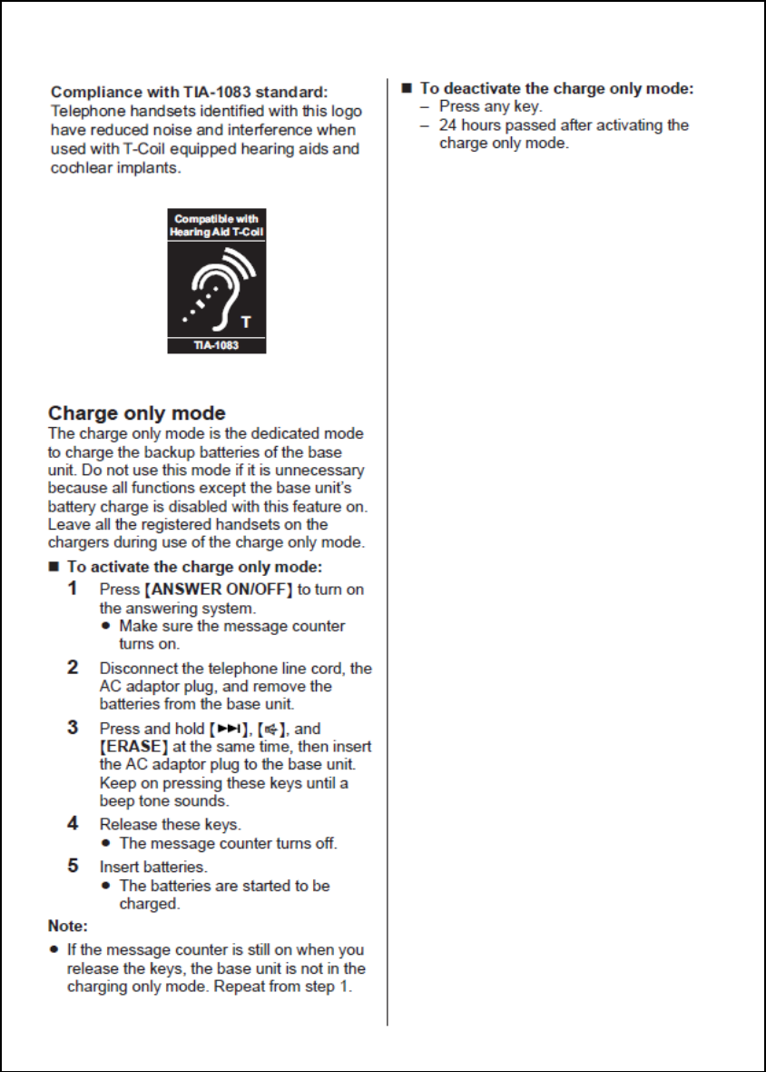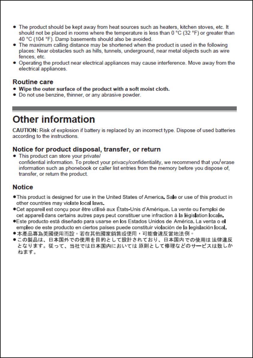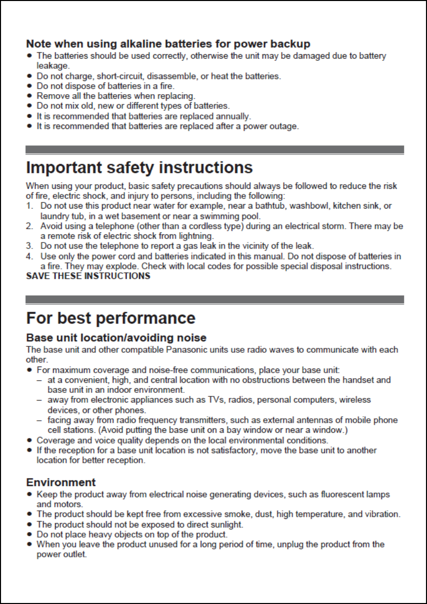 *4 The supplied rechargeable batteries in the handset and base unit are installed with insulation