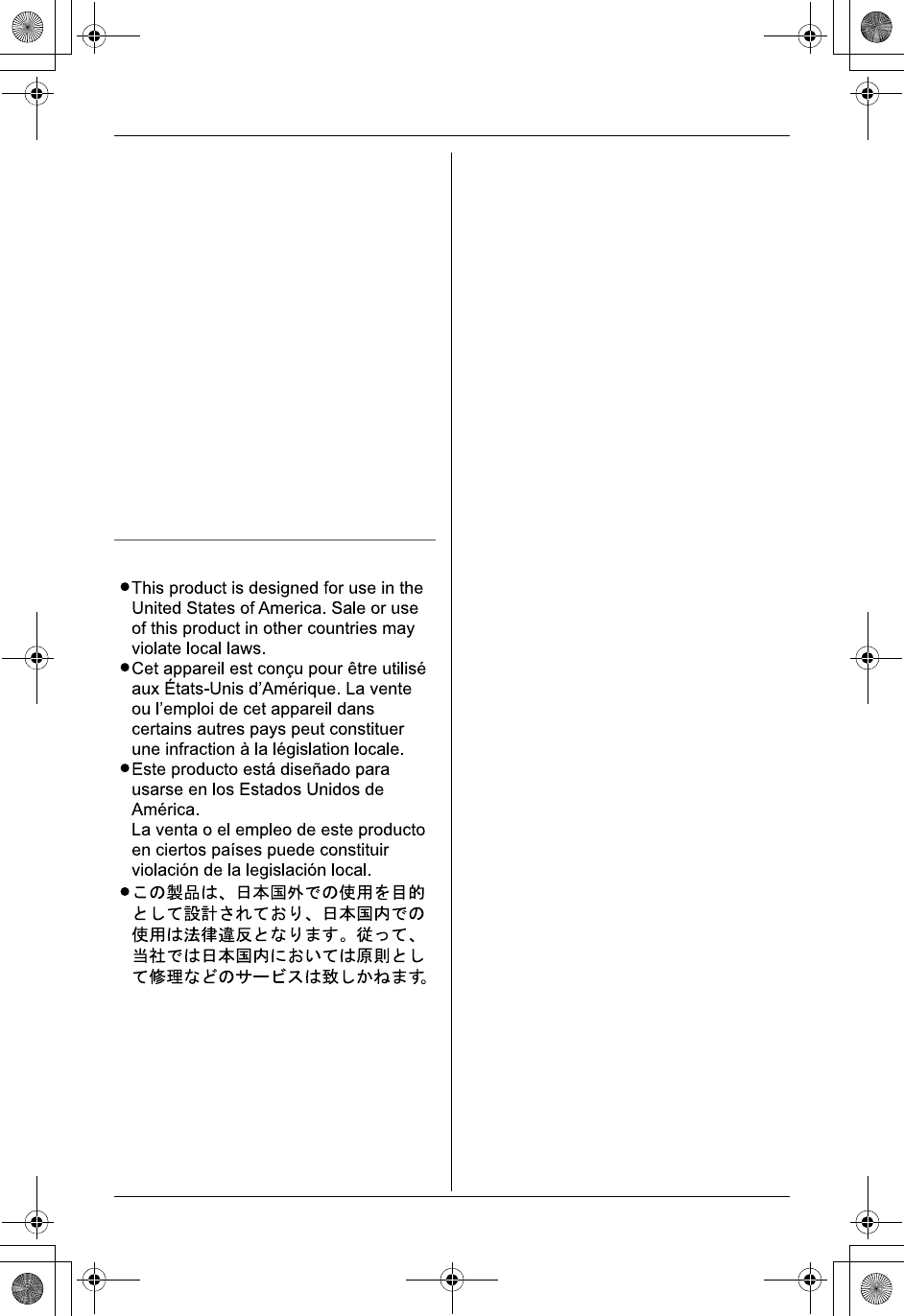 LDo not send your unit to Panasonic Consumer Electronics Company listed below or to