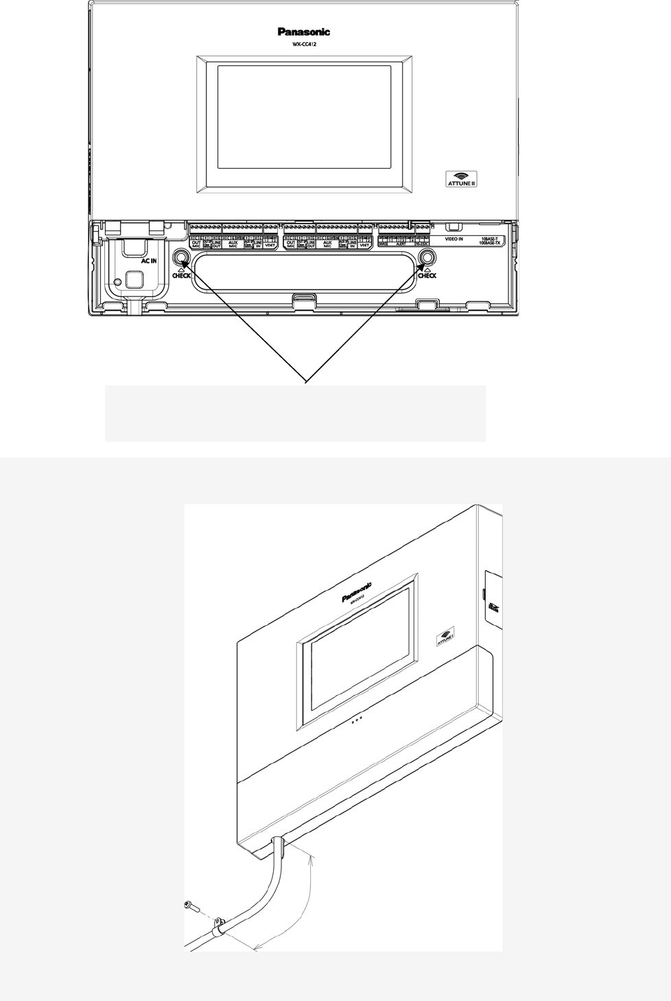5 Clamp the AC cable with the provided clamp, and secure the AC cable clamper to the wall by