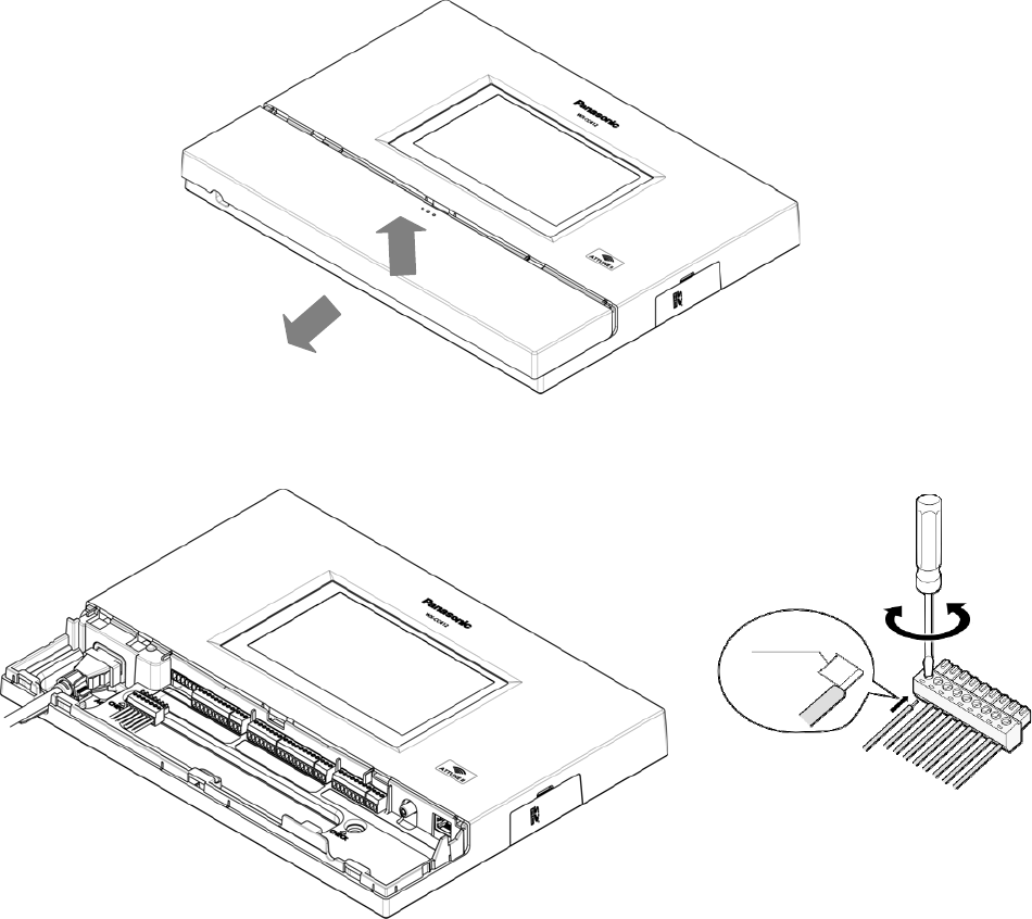 Use the “minus” screwdriver and loosen the screw located on the upper surface of the terminal