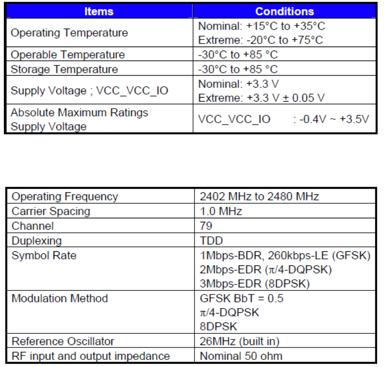 Reliability specifications and aspects for Panasonic Bluetooth Module BT12A.