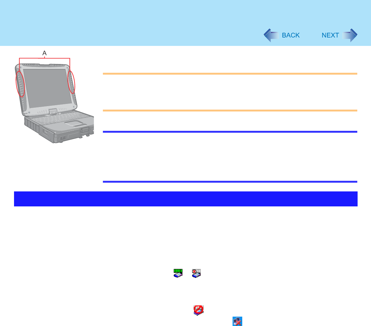 Communication is performed through the wireless LAN antenna (A).  Do not block the