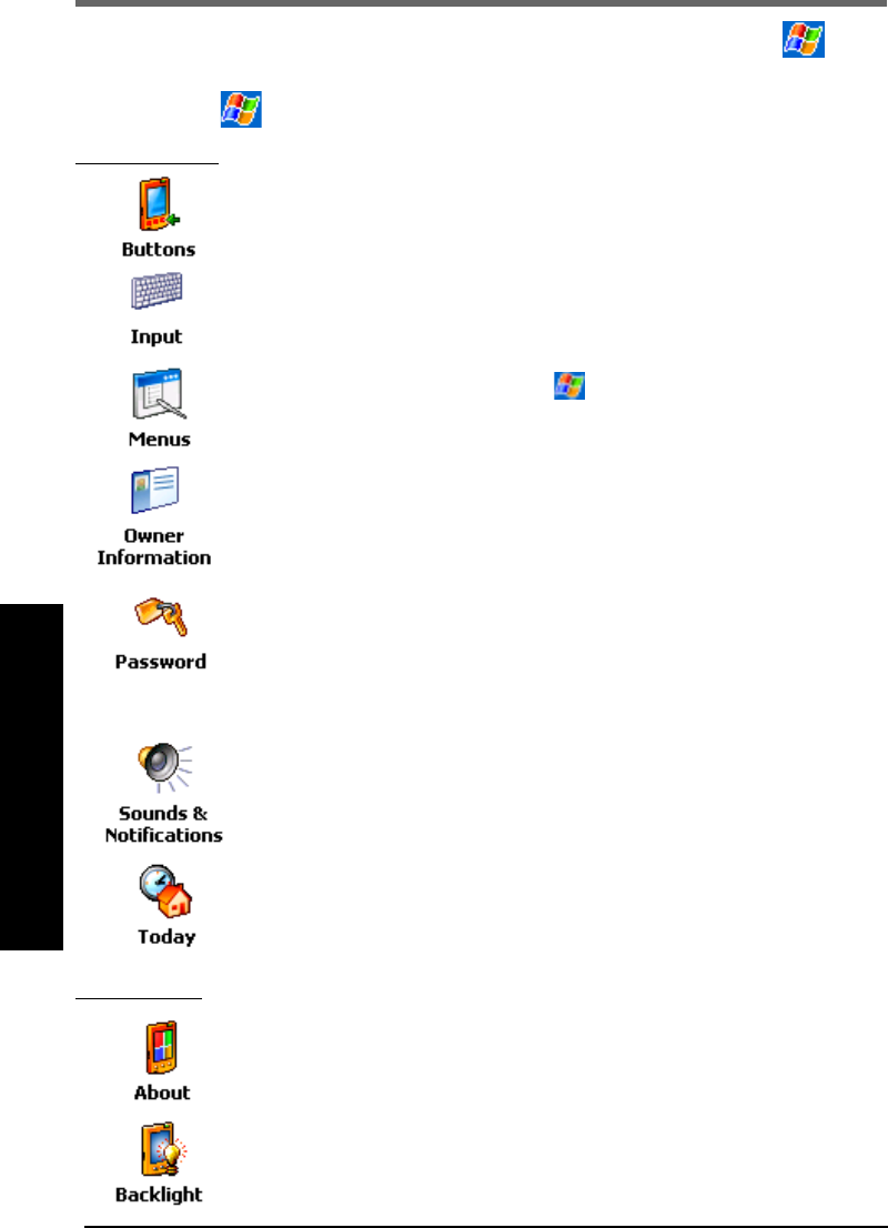 - [Programs]: This illustration means to tap   at the top of the screen, then to