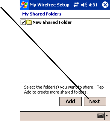 Tap Add to add another shared folder or tap Next to