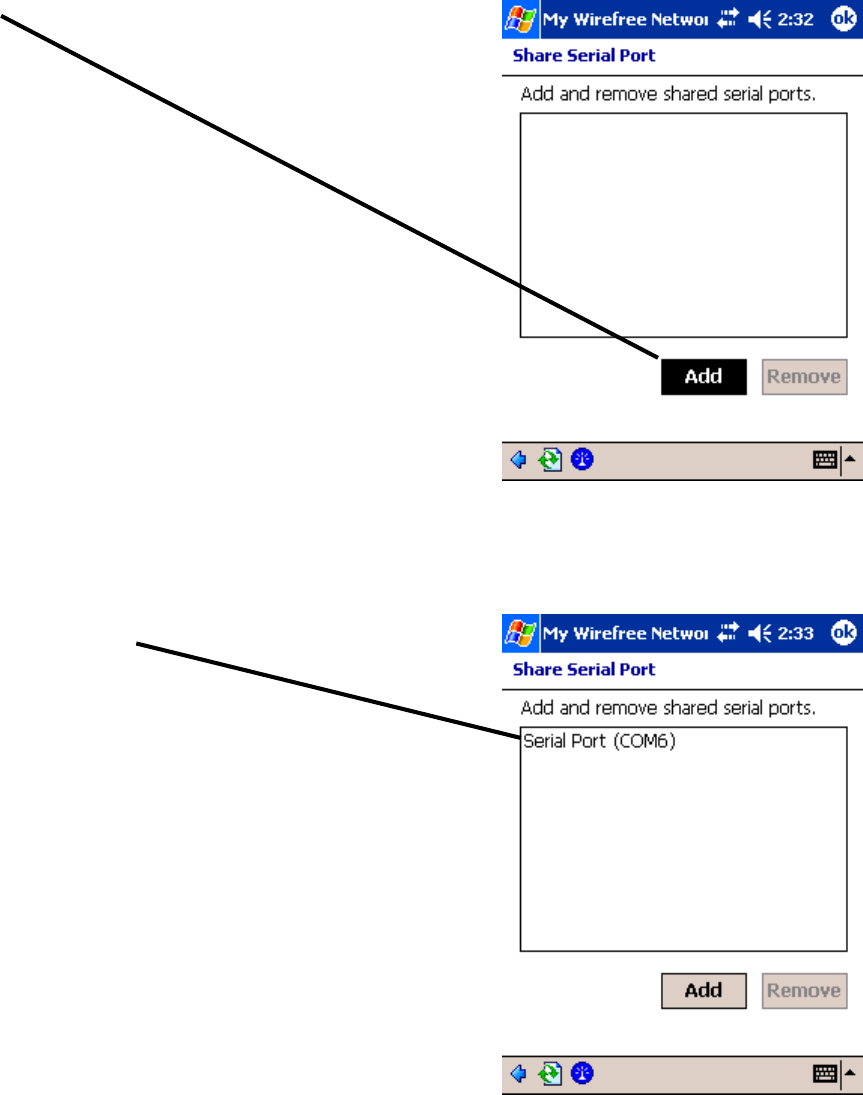 A shared serial port must be added before a Serial Port service can be displayed to