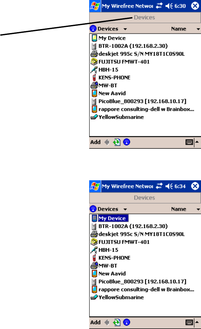 Devices locates and lists other Bluetooth wireless