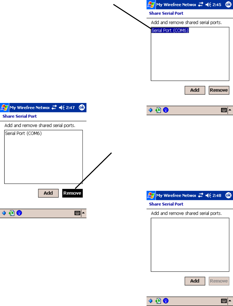 Tap on the serial port you wish to remove.