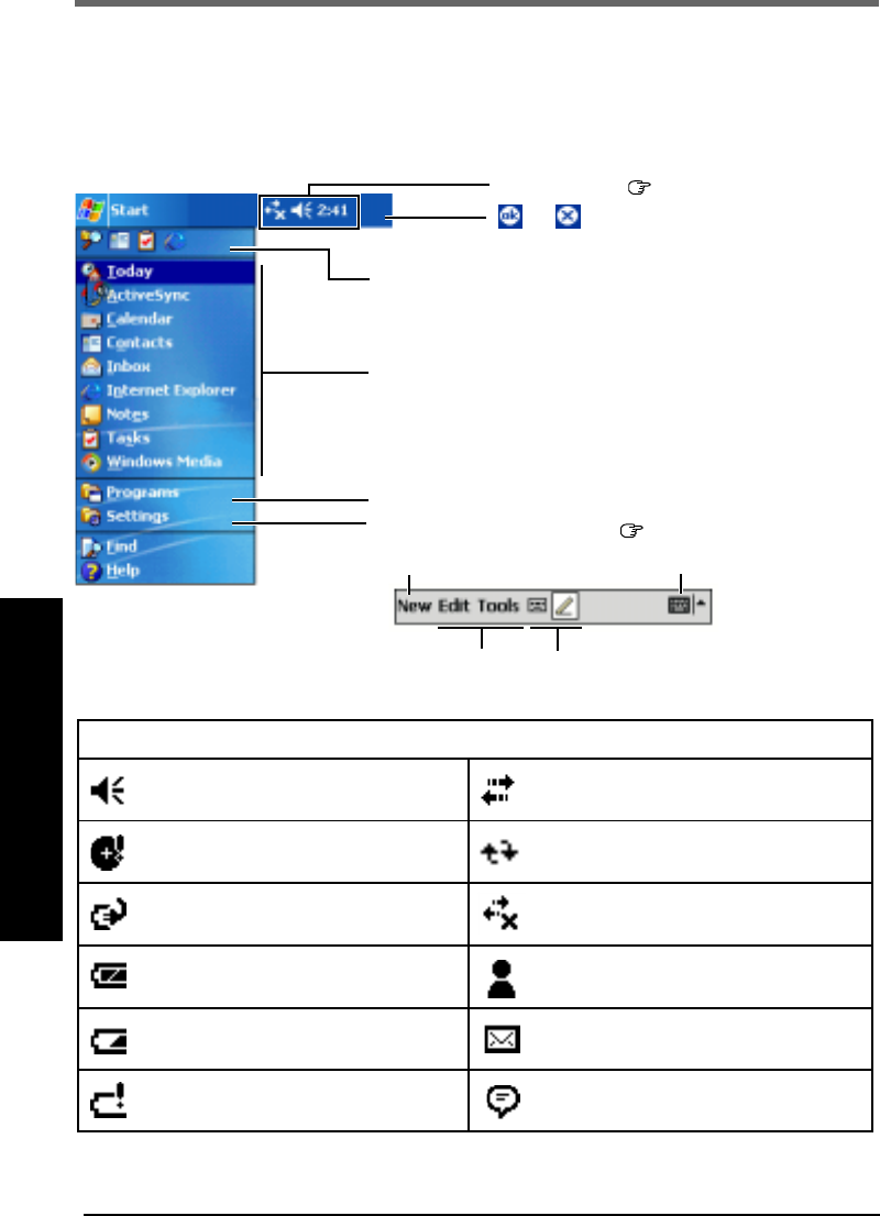 - [Programs]: This illustration means to tap   at the top of the screen, then to