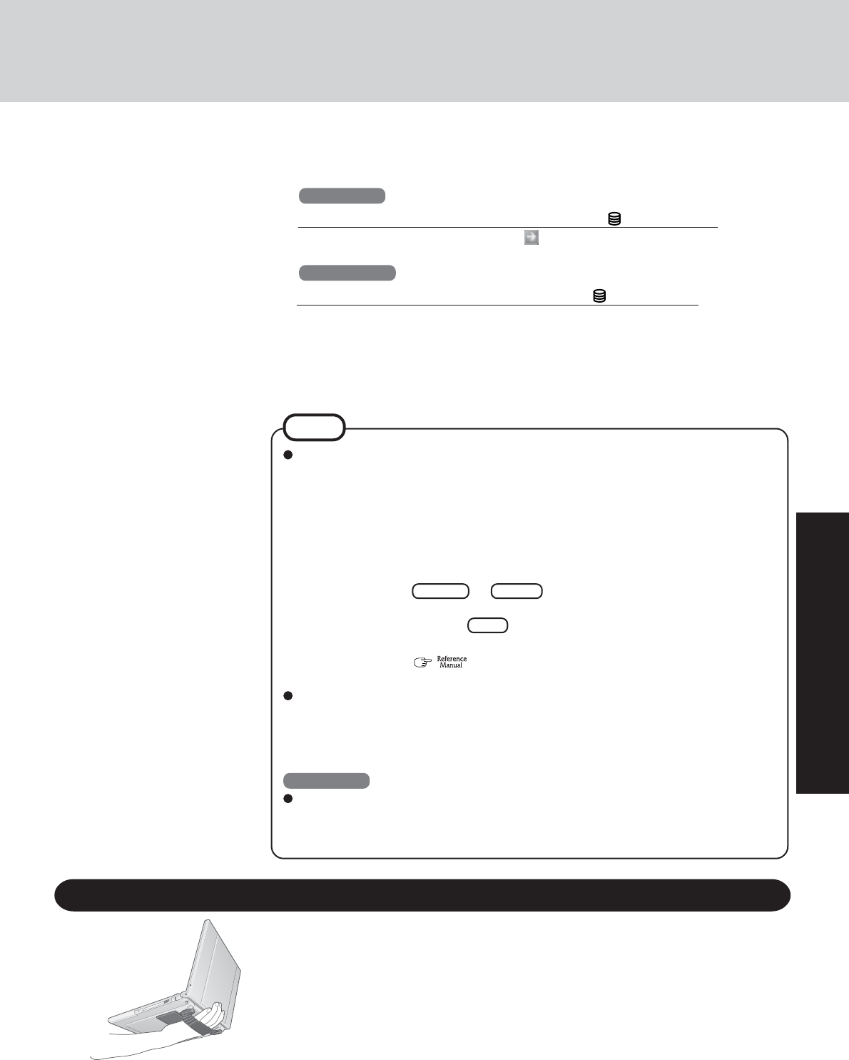 : This illustration means to refer to the Reference Manual, which is available on your computer.