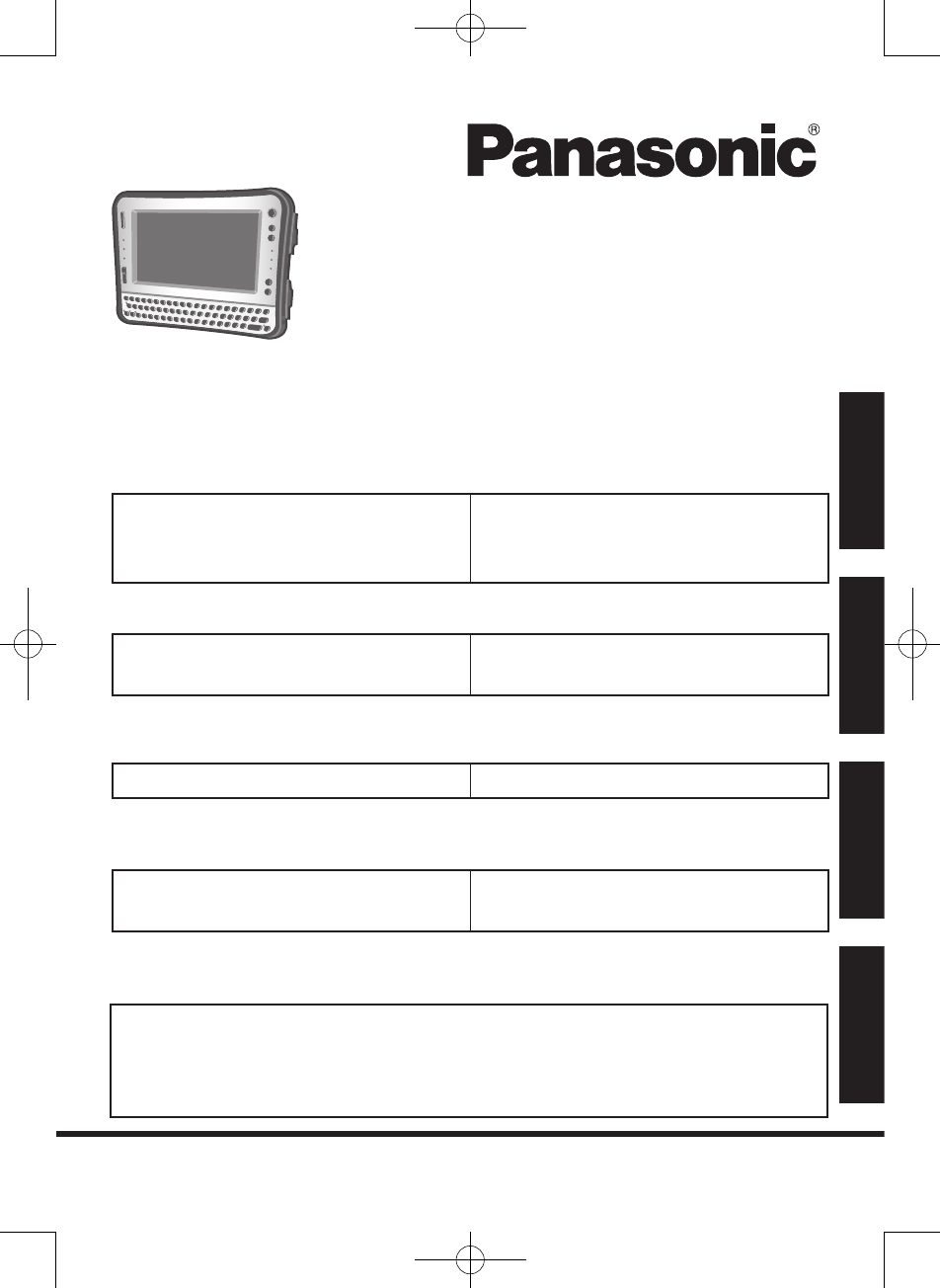 Panasonic of North America 9TGCF-U14 Toughbook PC with WWAN, WLAN and Bluetooth User Manual CF U1 Vista US GettingStart indd