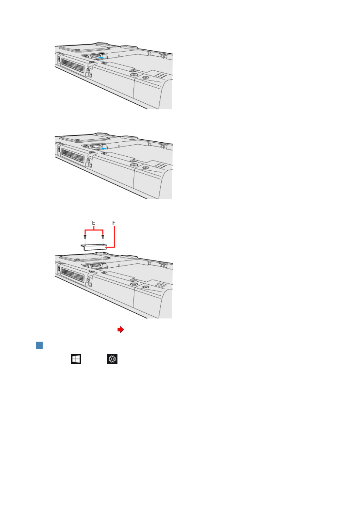 4. Remove the screws (E) and the SIM card slot cover (F).