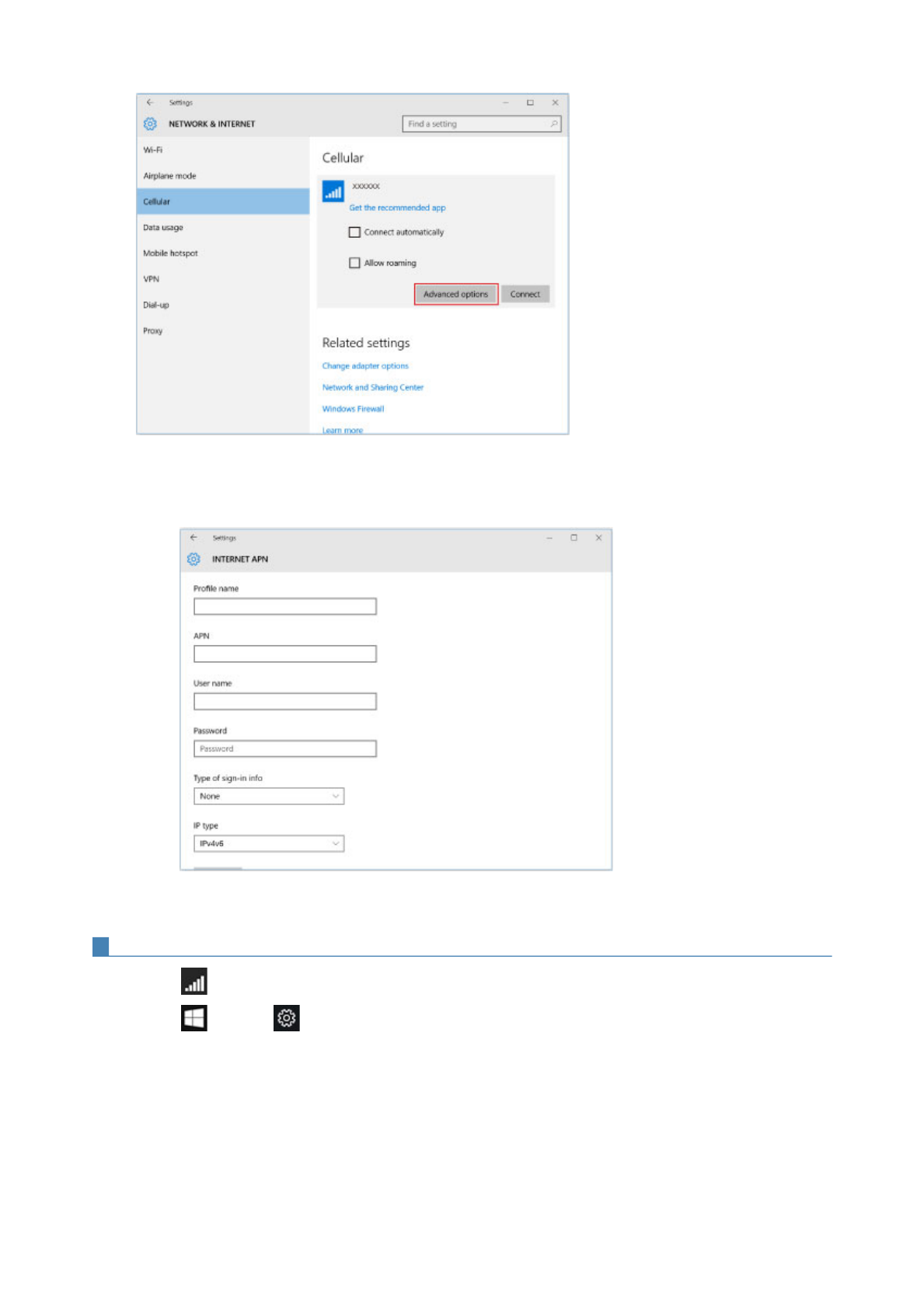 1. Touch  (Start) -  (Settings) - [Network & Internet] - [Cellular].