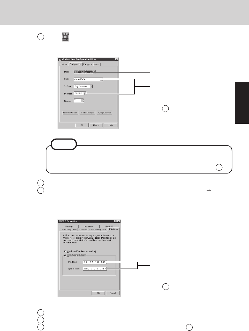 IEEE 802.11 PC CARD Adapter] - [Properties] - [IP Address].