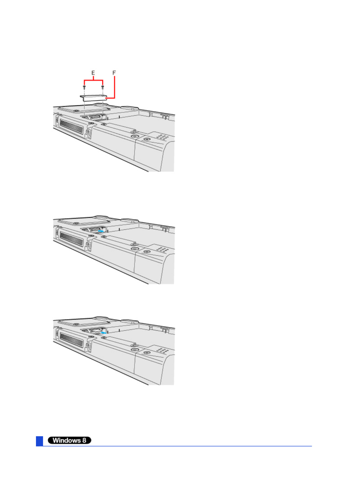 3. Remove the screws (E) and the SIM card slot cover (F).