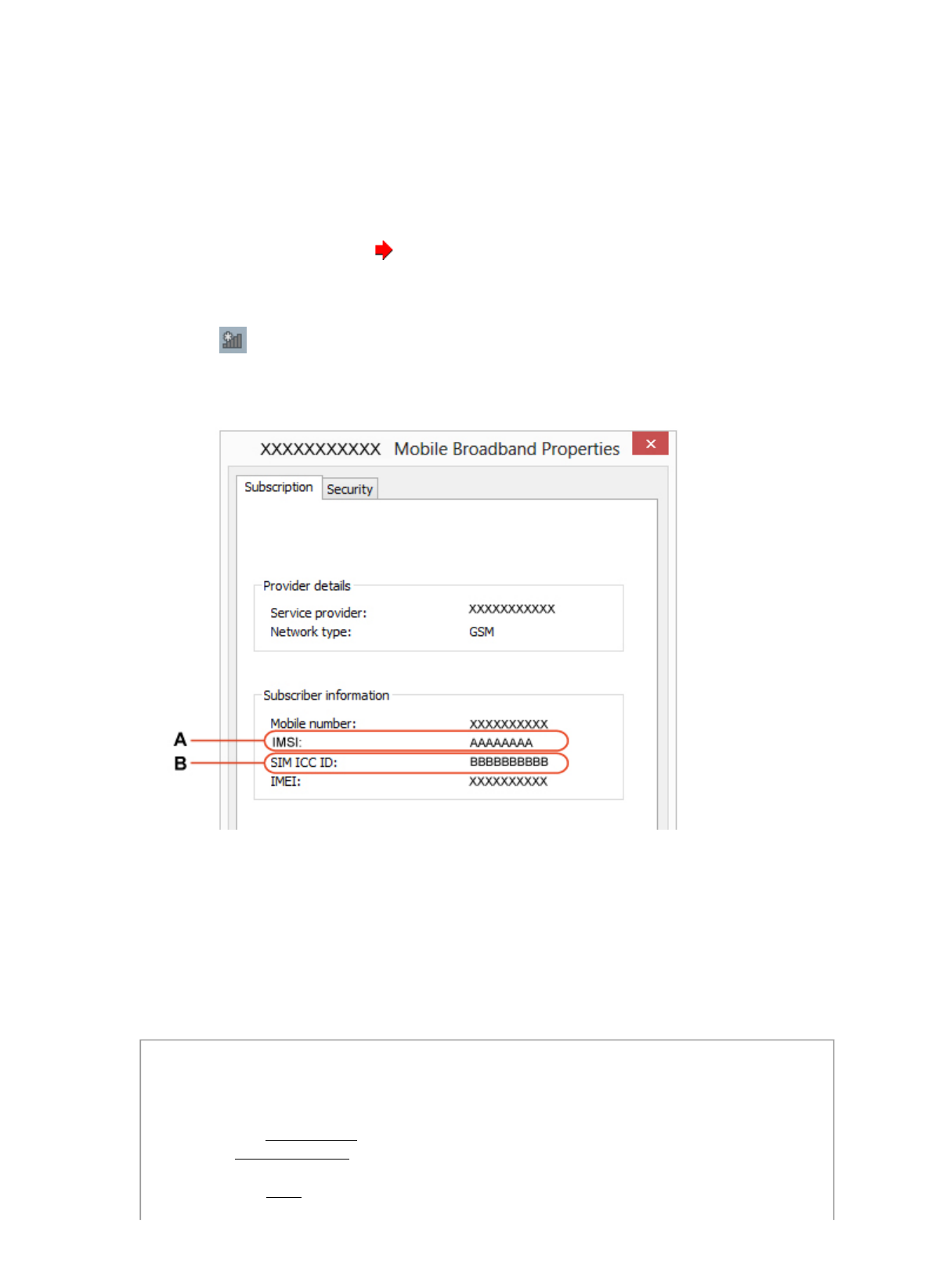 3. Check "IMSI" (A) and "SIM ICC ID" (B).