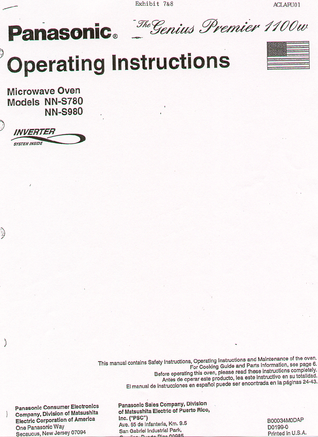 Panasonic of North America AP4U01 Microwave Oven User Manual Operators Manual Cover Page