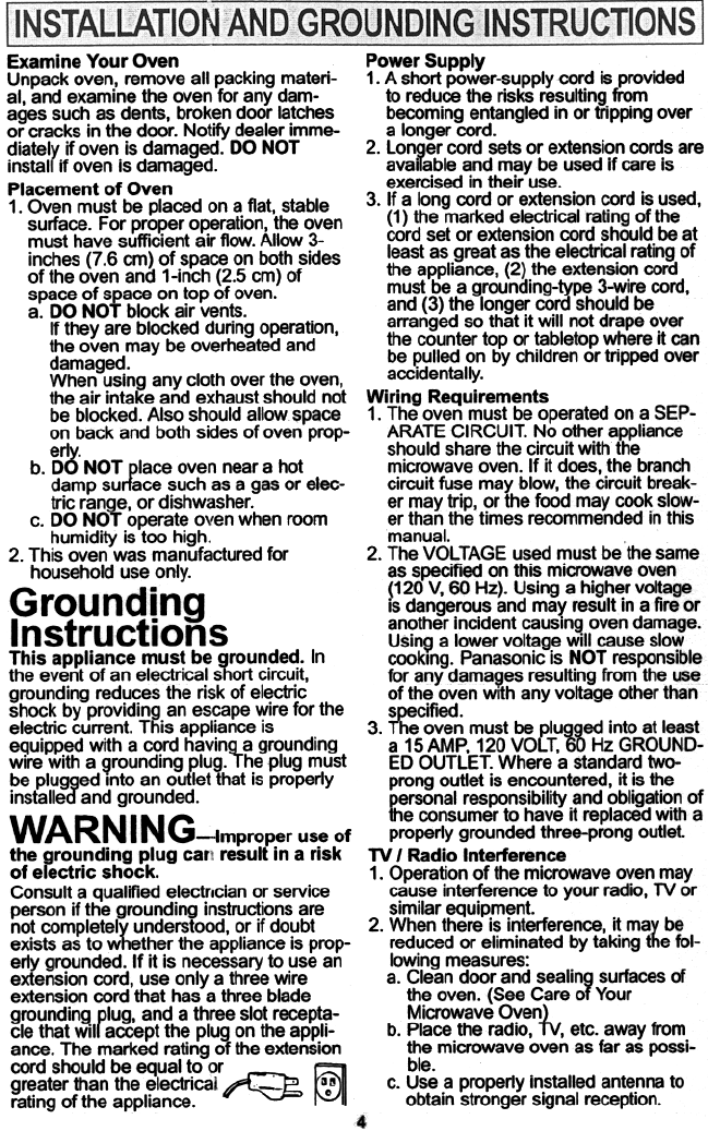 Panasonic of North America AP5G61 Microwave Oven User Manual and Operating Instructions