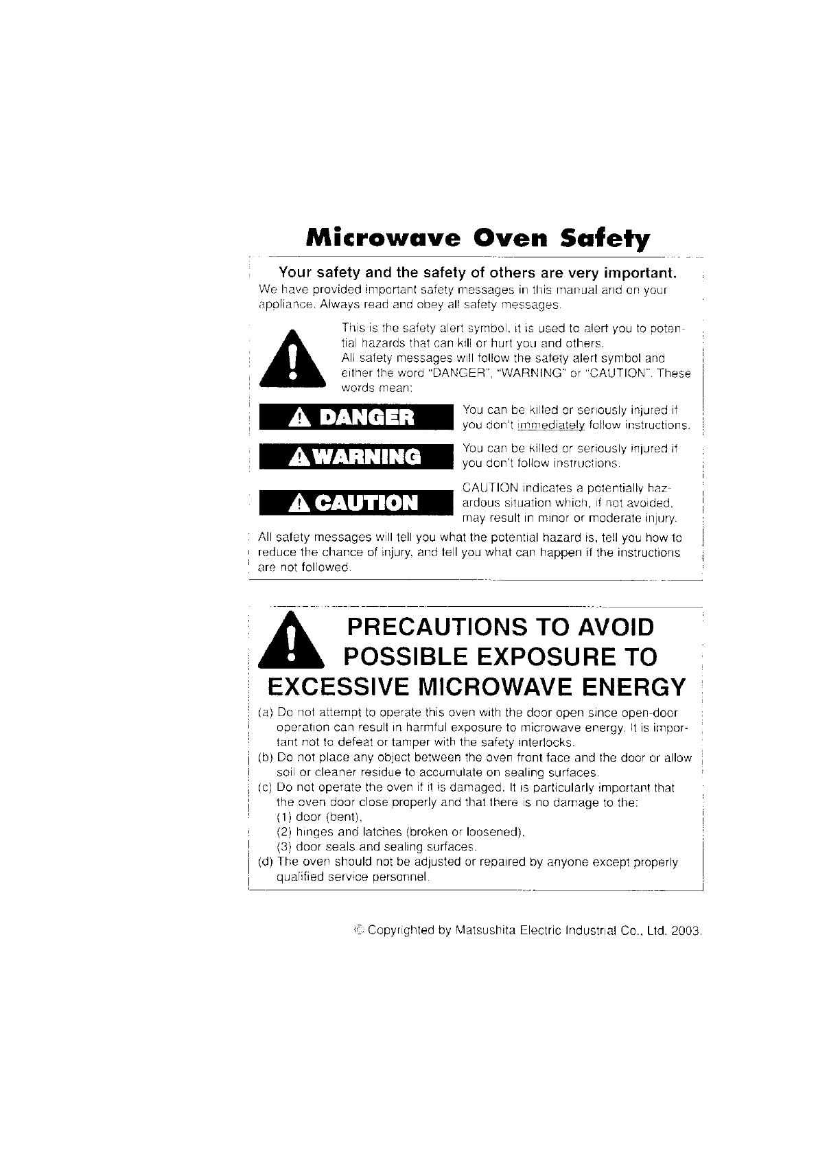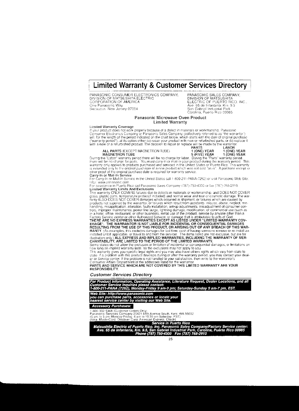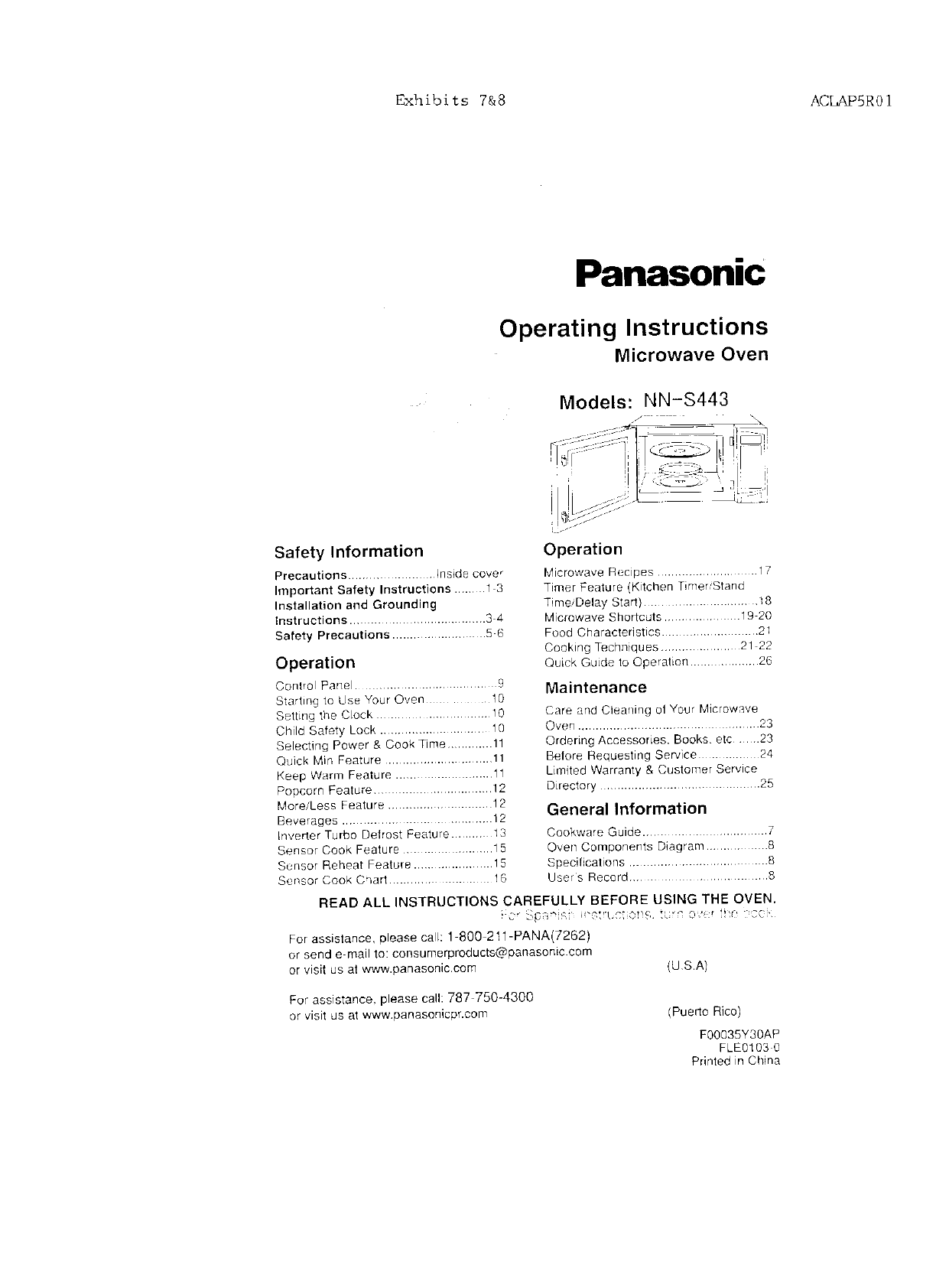 Panasonic of North America AP5R01 Microwave Oven User Manual and Operating Instructions