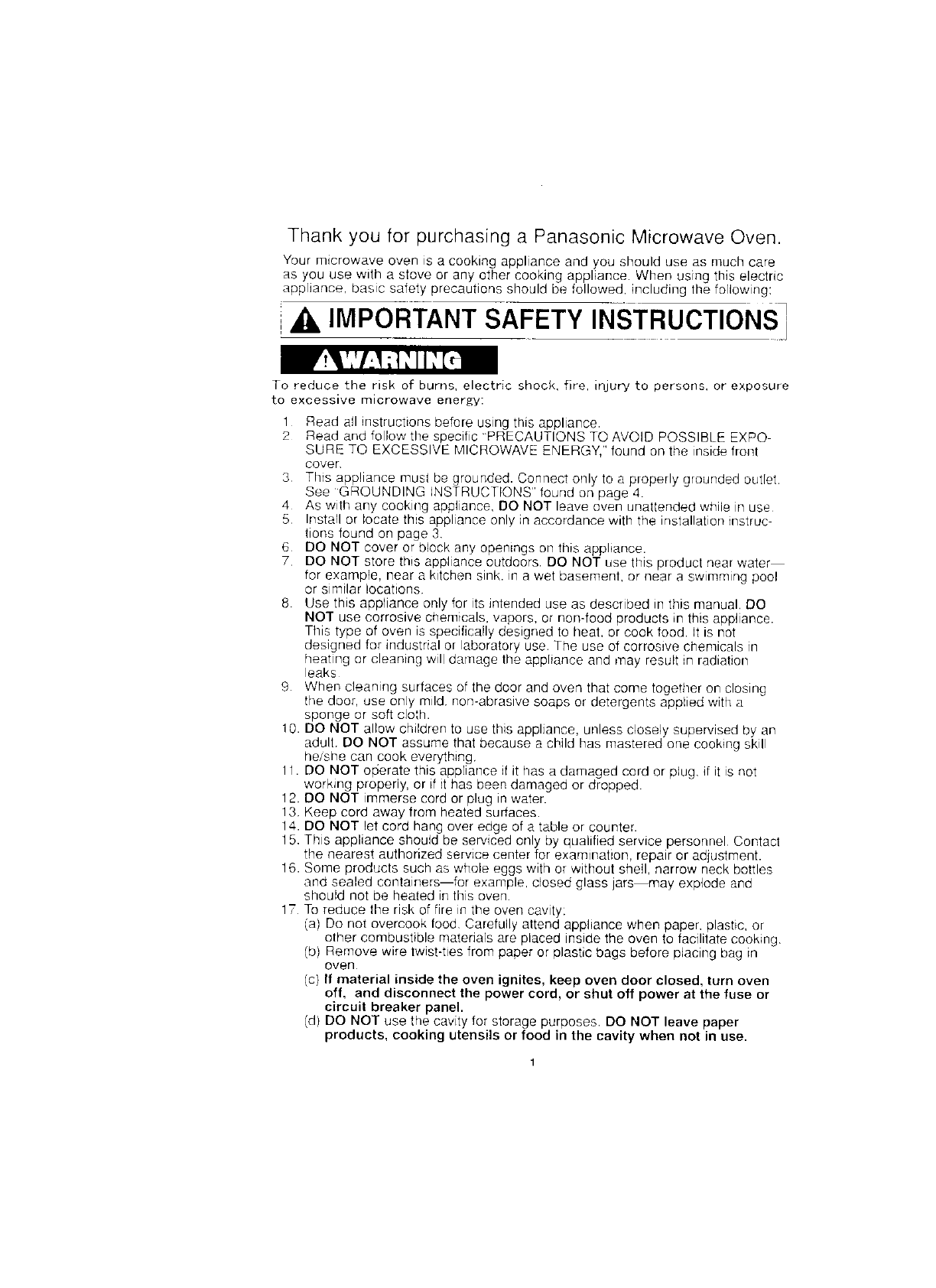 Panasonic Appliance Company of America Microwave Oven Users Manual and Operating Instructions