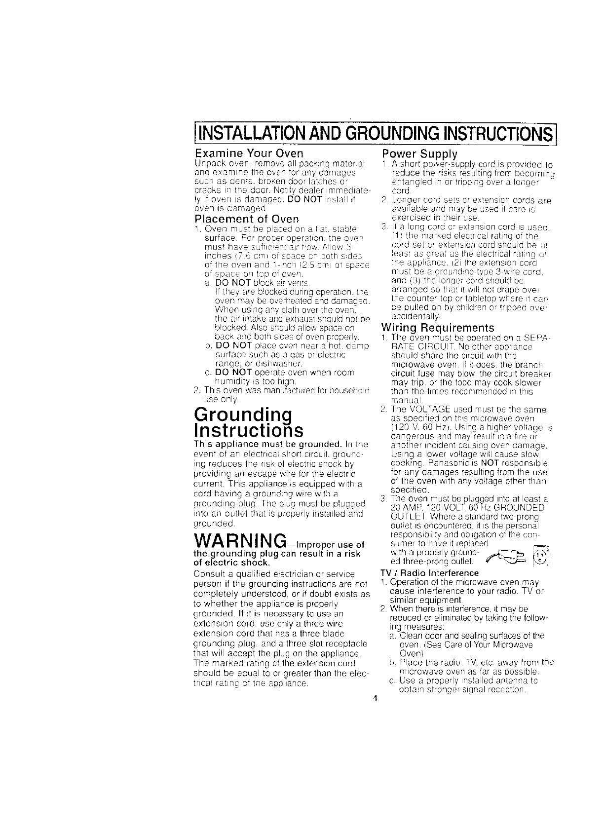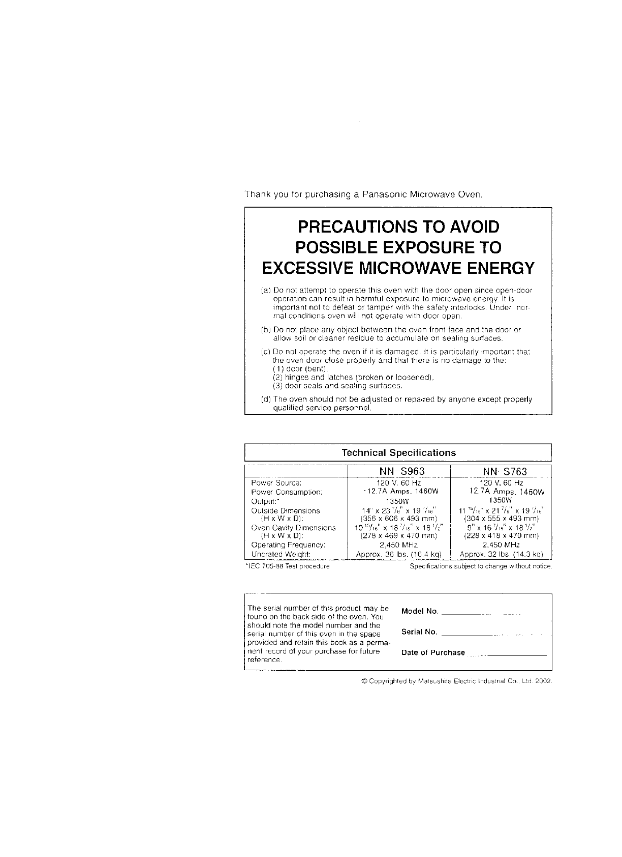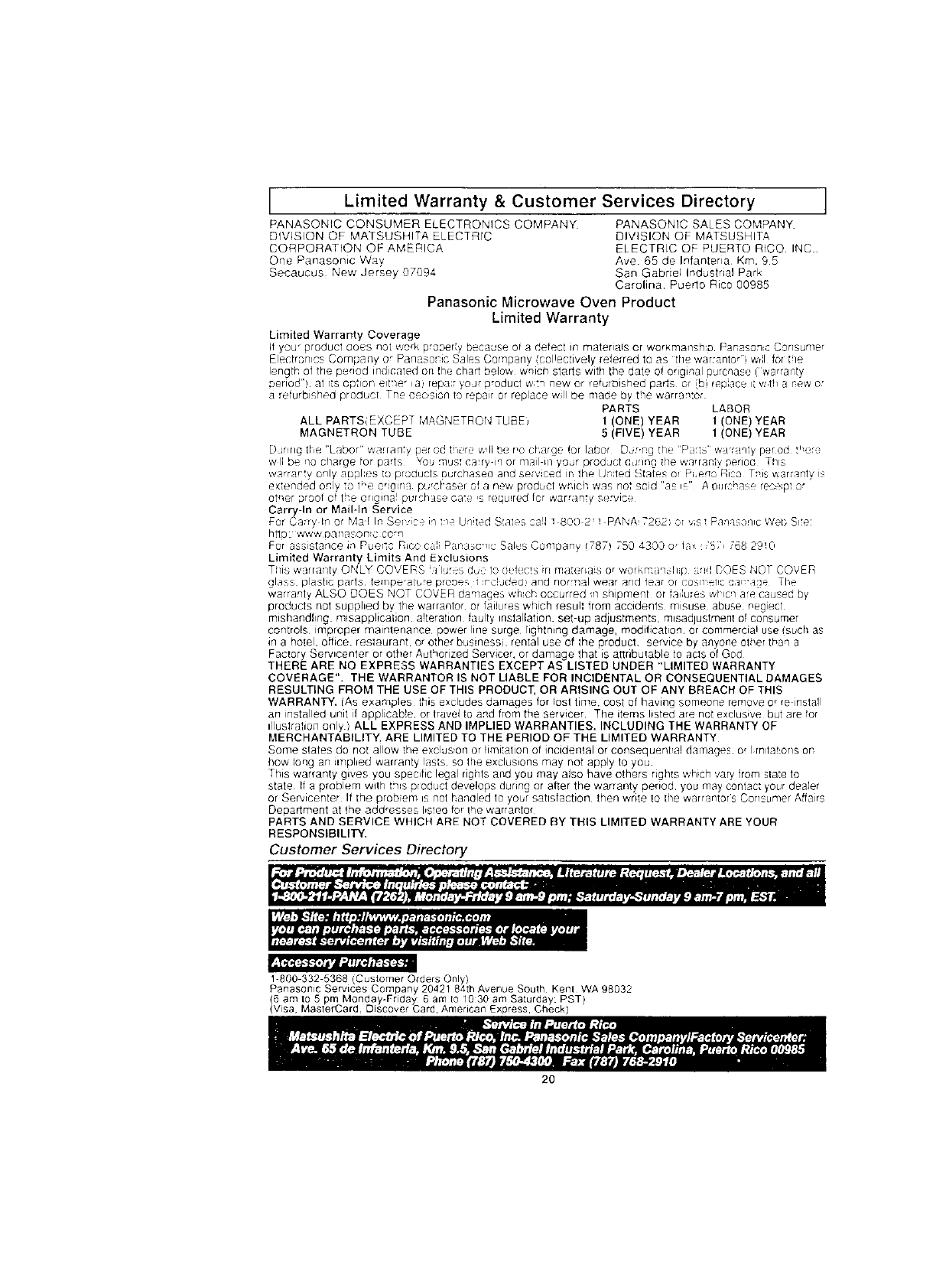 Panasonic Appliance Company of America Microwave Oven Users Manual and Operating Instructions