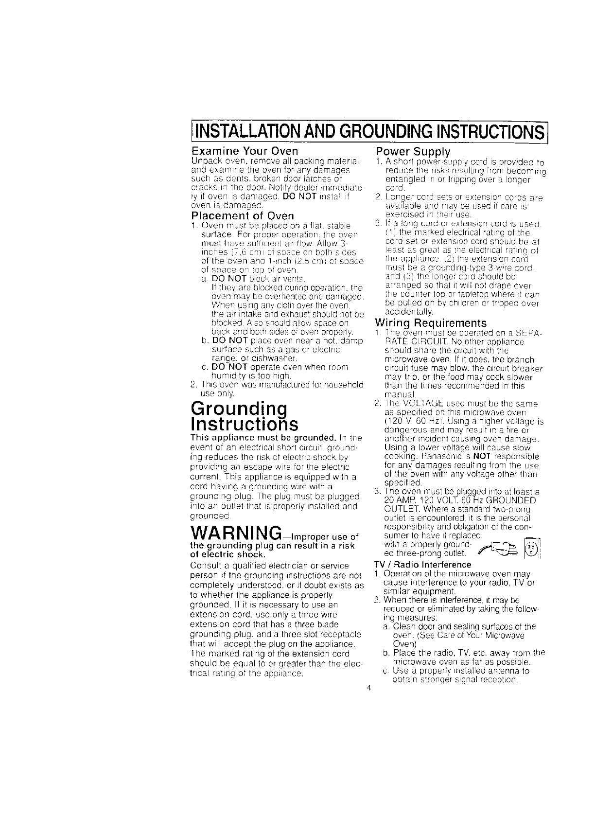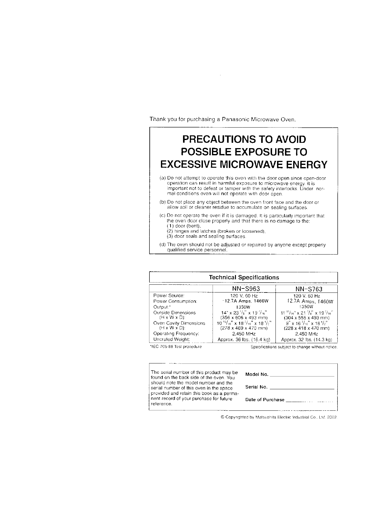 Panasonic Appliance Company of America Microwave Oven Users Manual and Operating Instructions