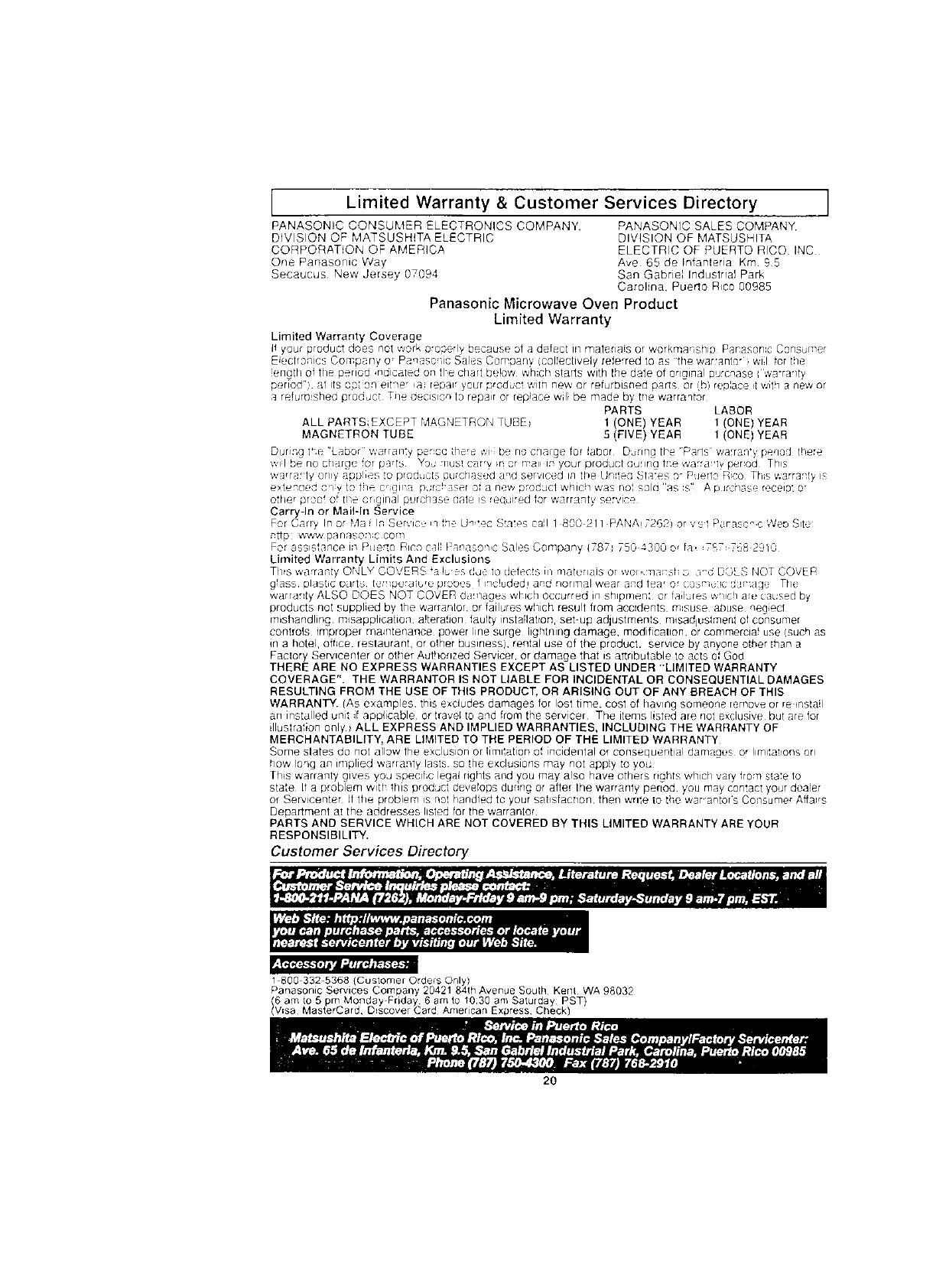 Panasonic of North America AP5X01 Microwave Oven User Manual and Operating Instructions