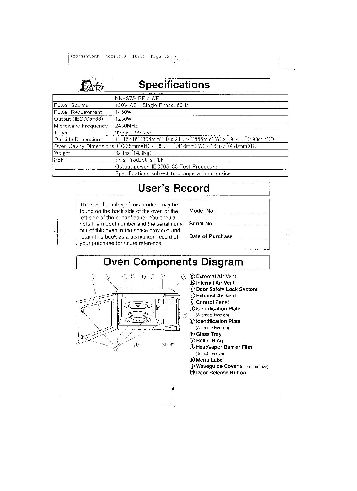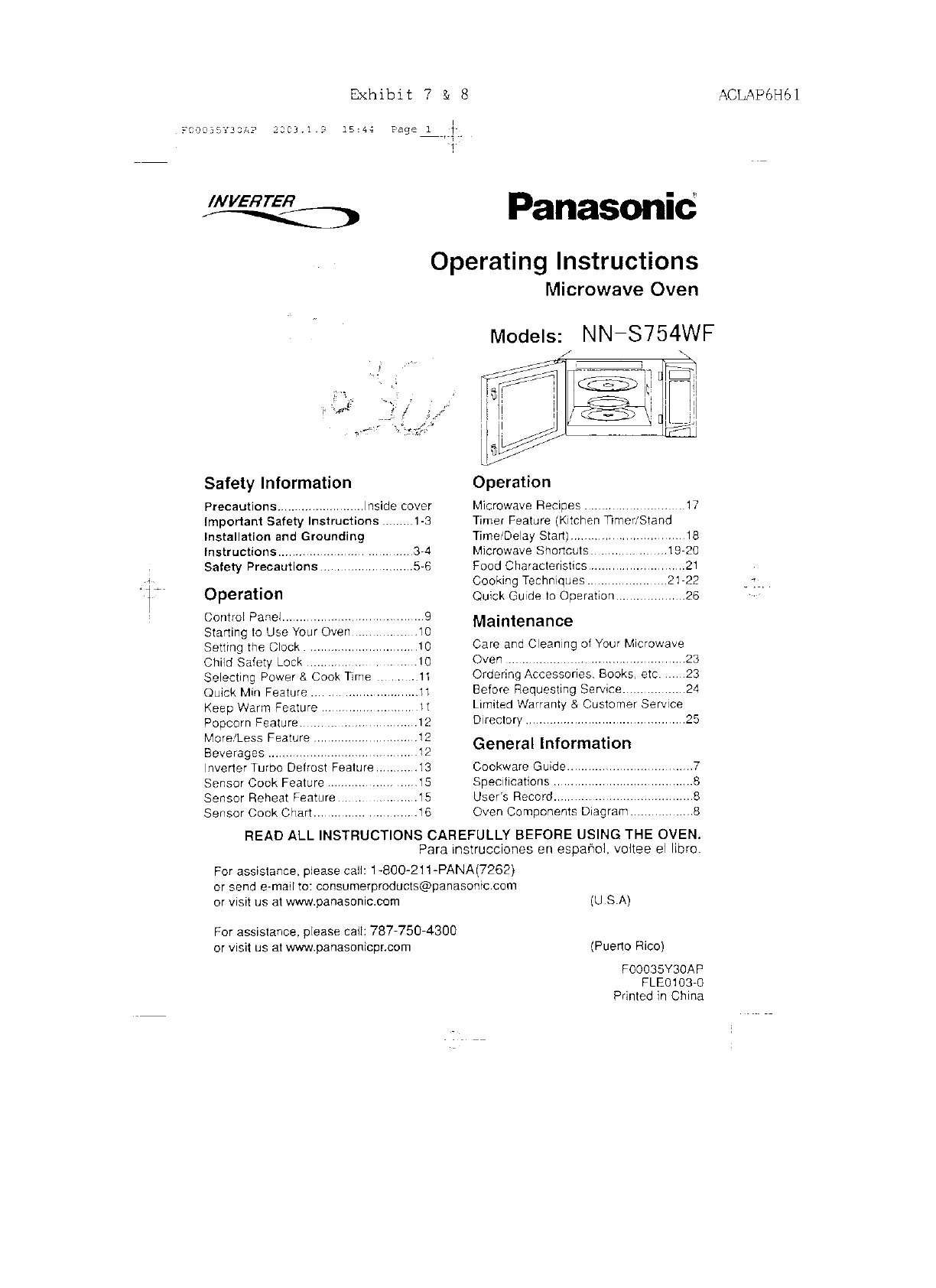 Panasonic of North America AP6H61 Microwave Oven User Manual Owners Manual and Instructions