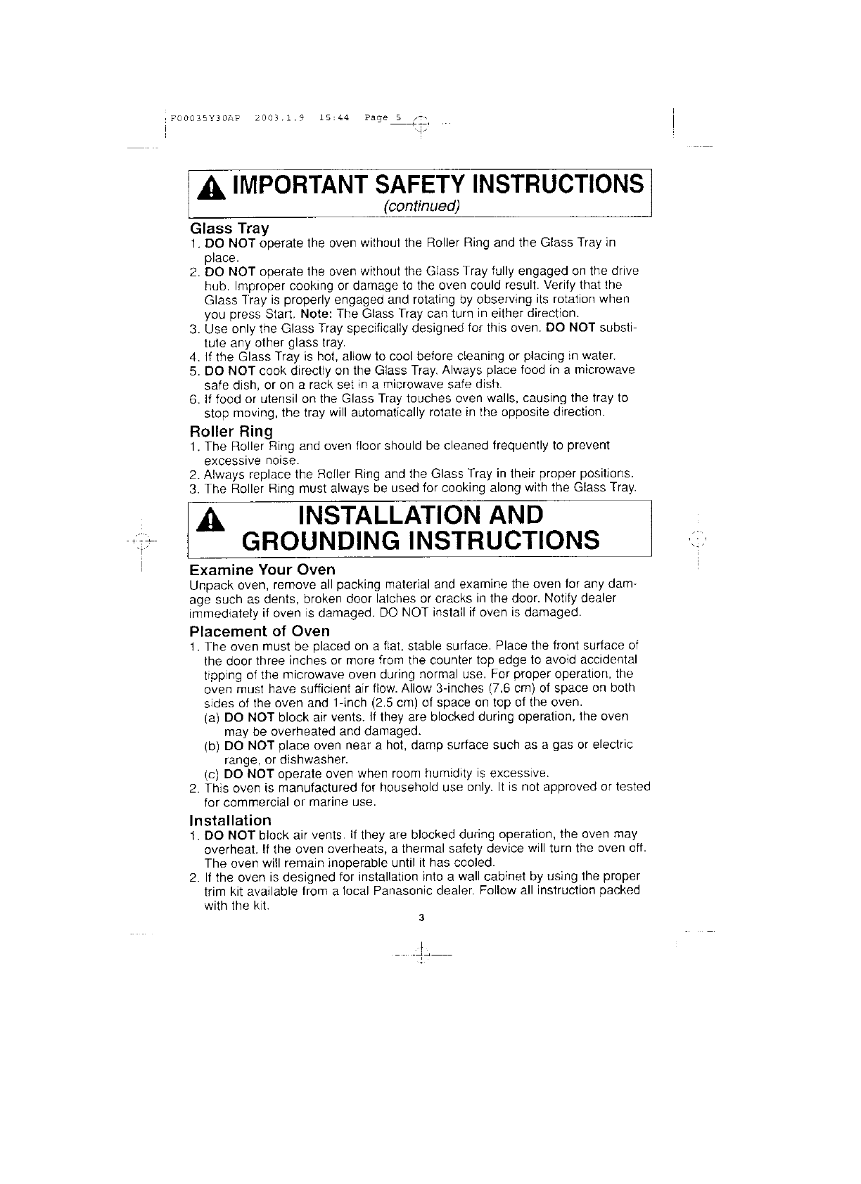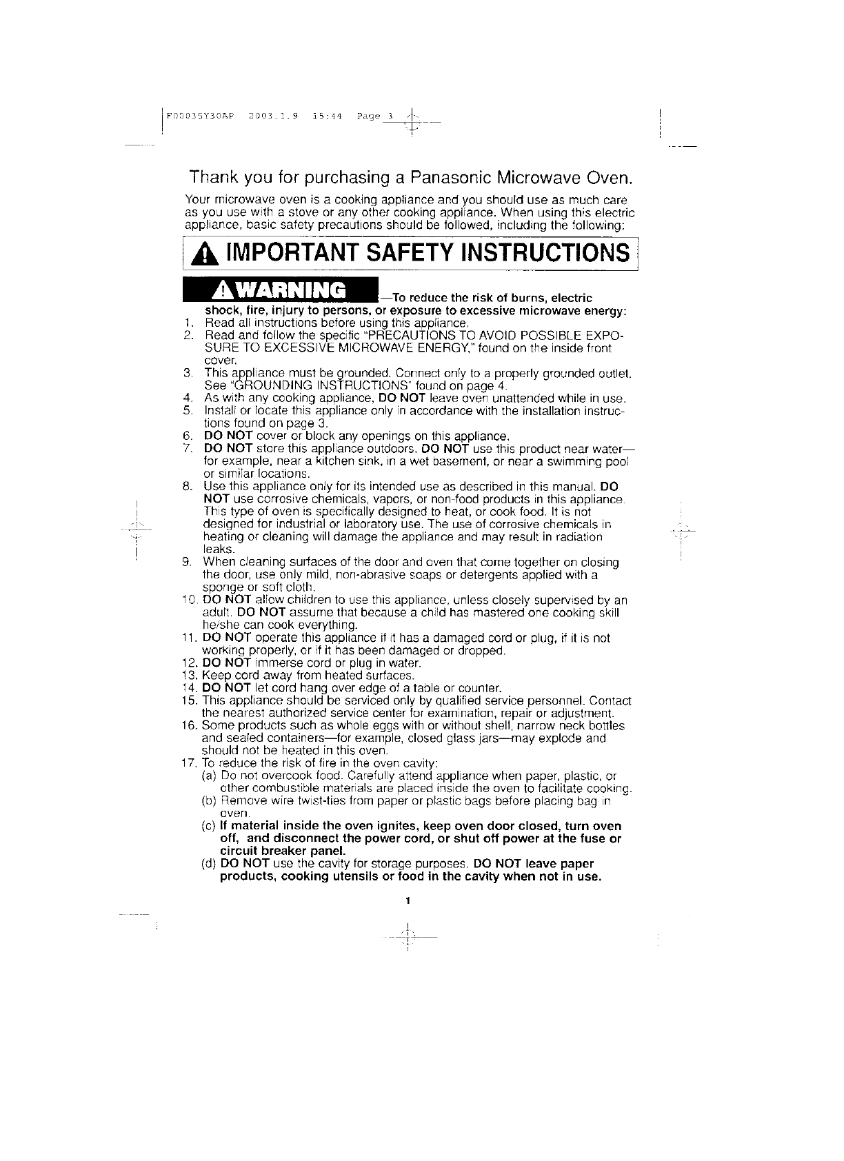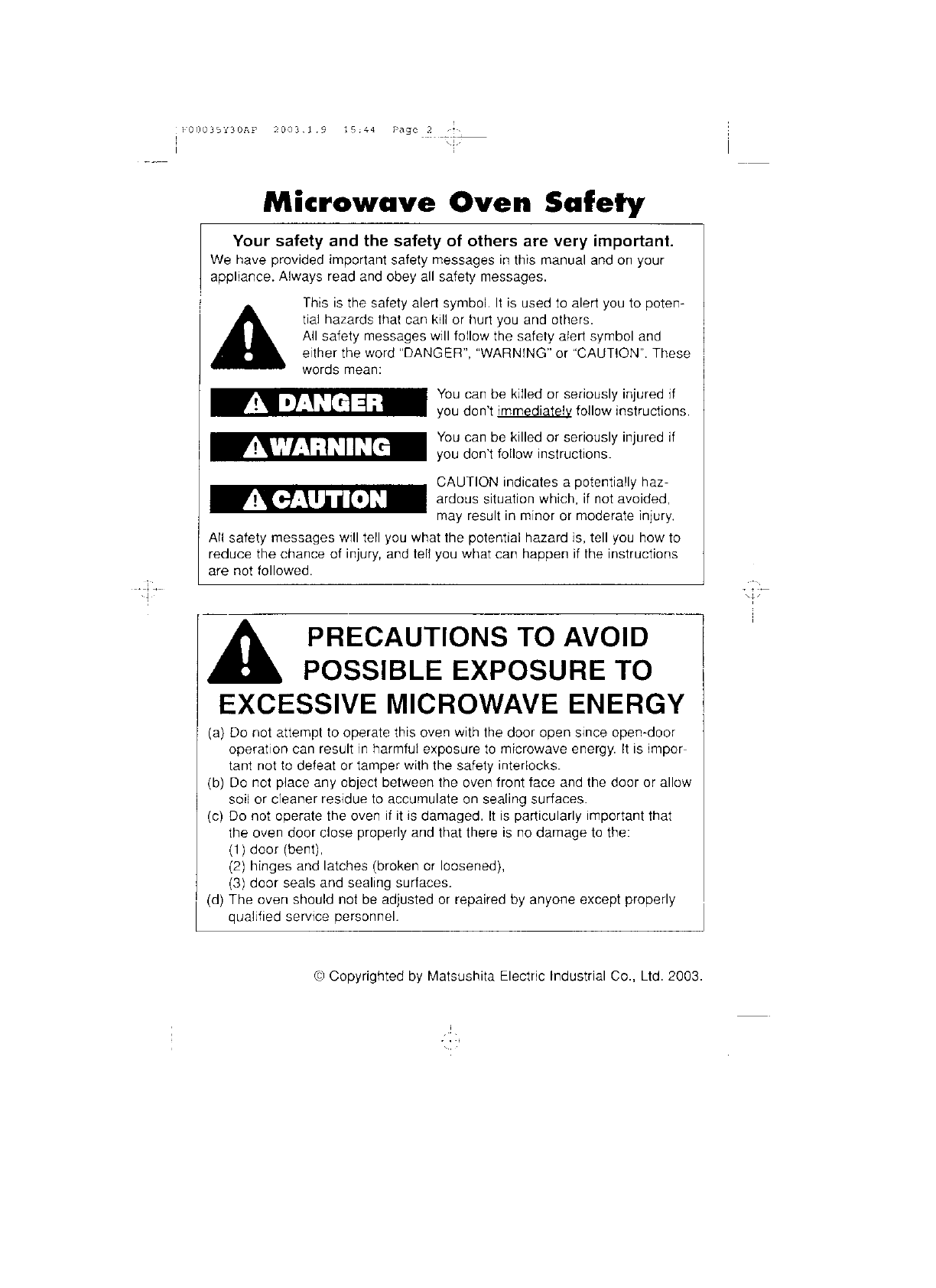Panasonic Appliance Company of America Microwave Oven Owners Manual and Instructions