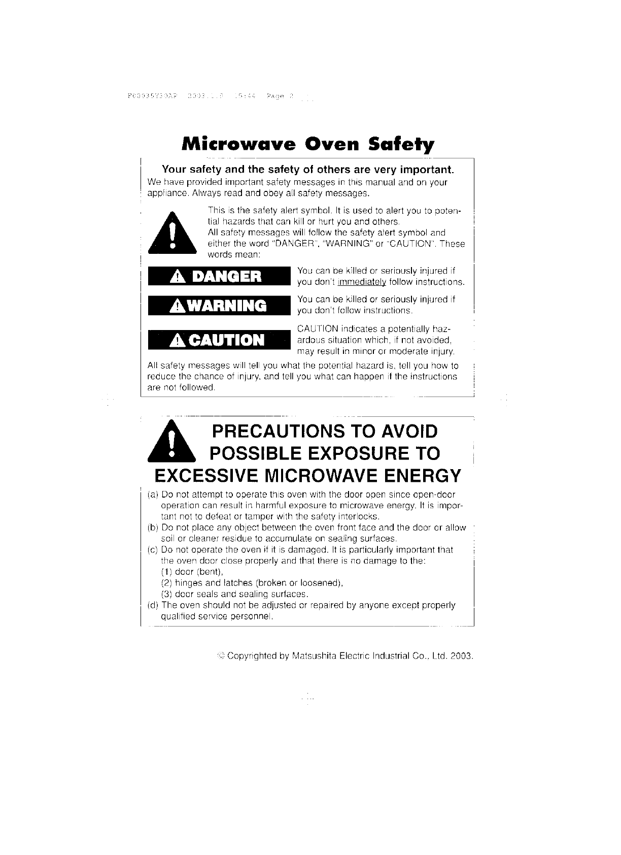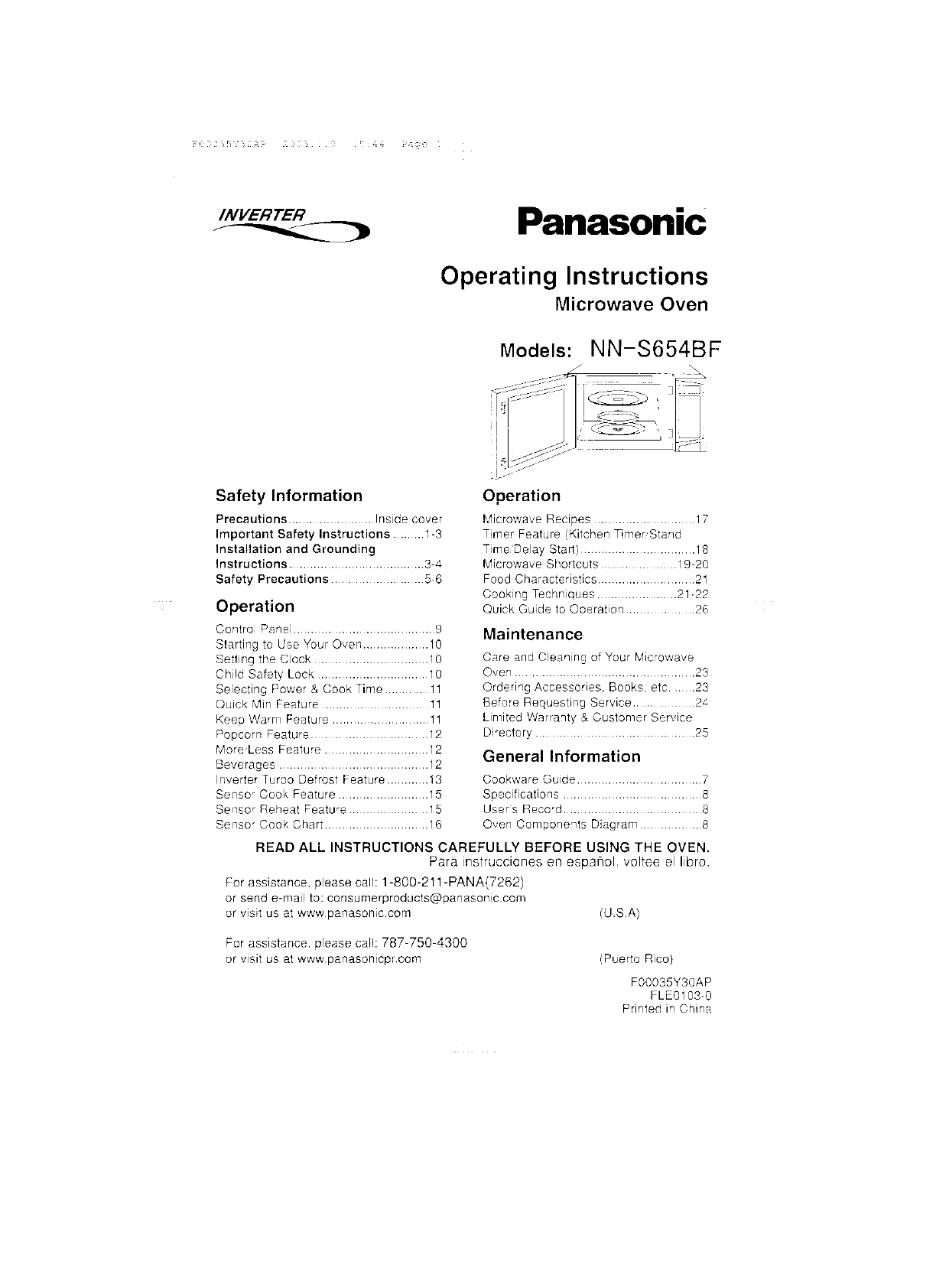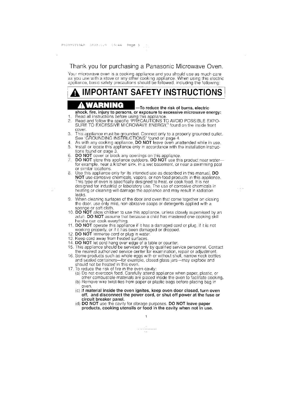 Panasonic Appliance Company of America Microwave Oven Users Manual and Operating Instructions