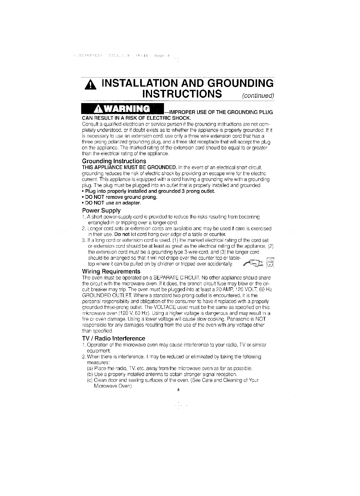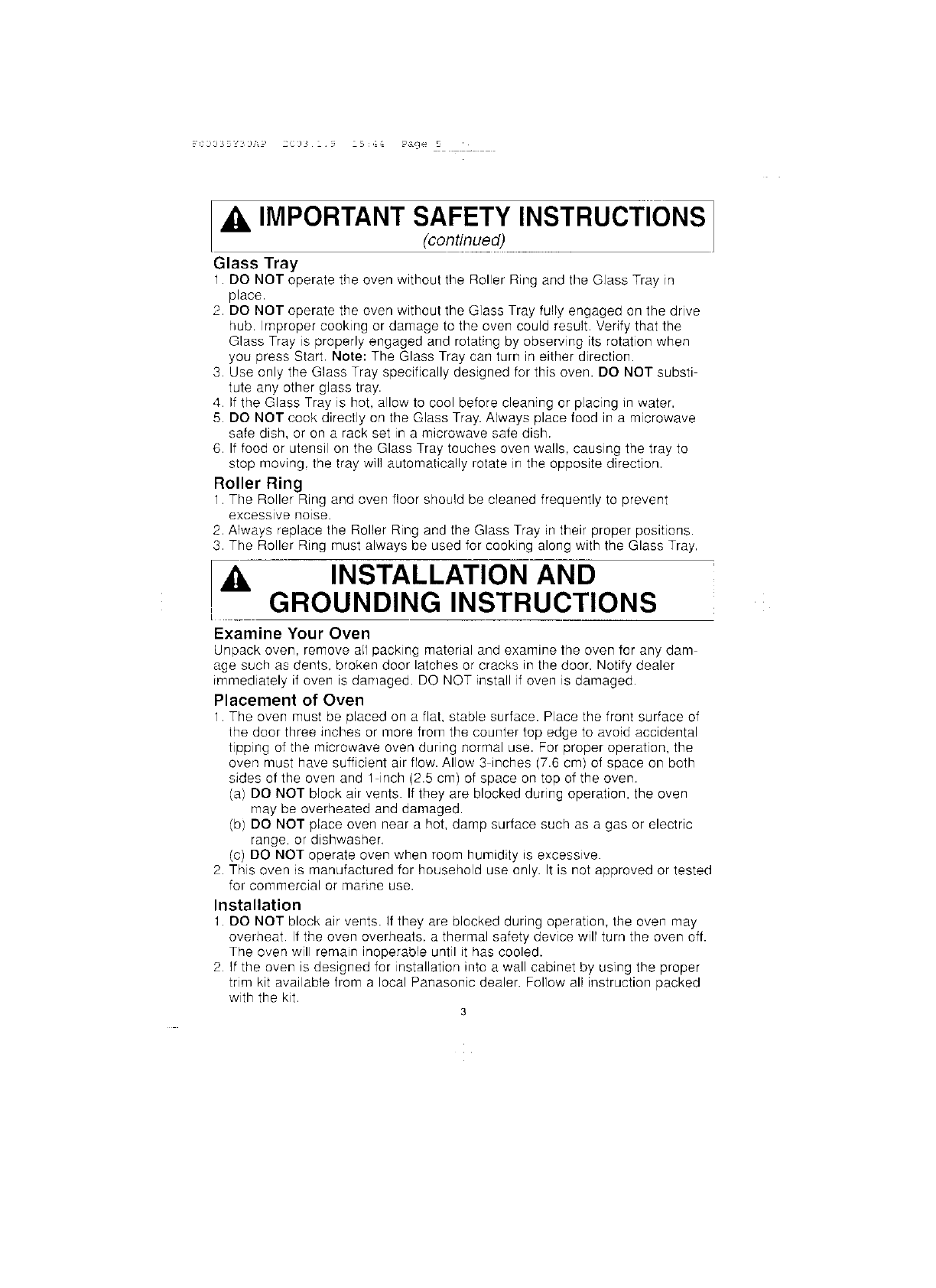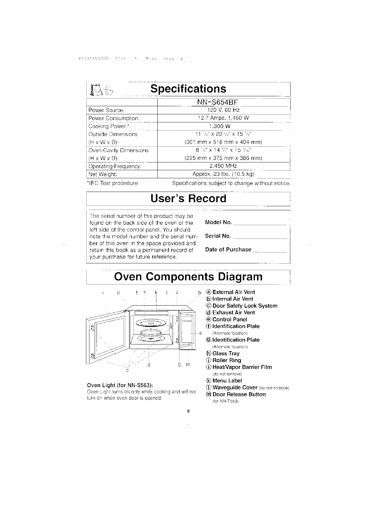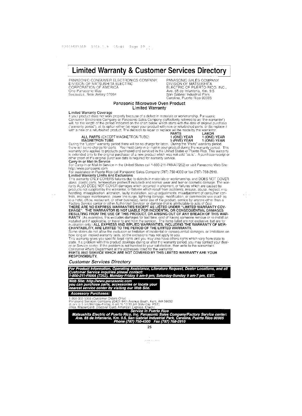 Panasonic Appliance Company of America Microwave Oven Users Manual and Operating Instructions