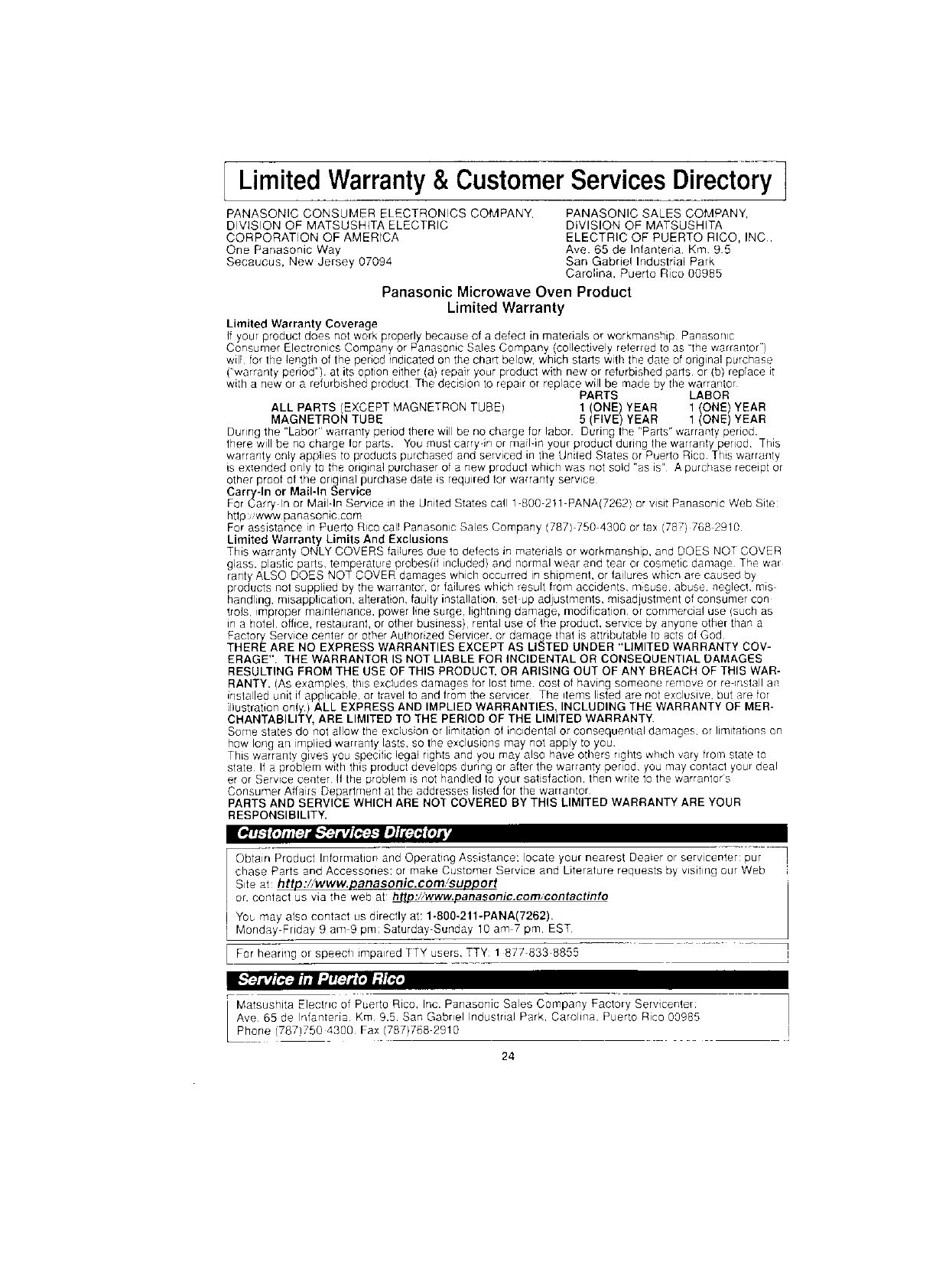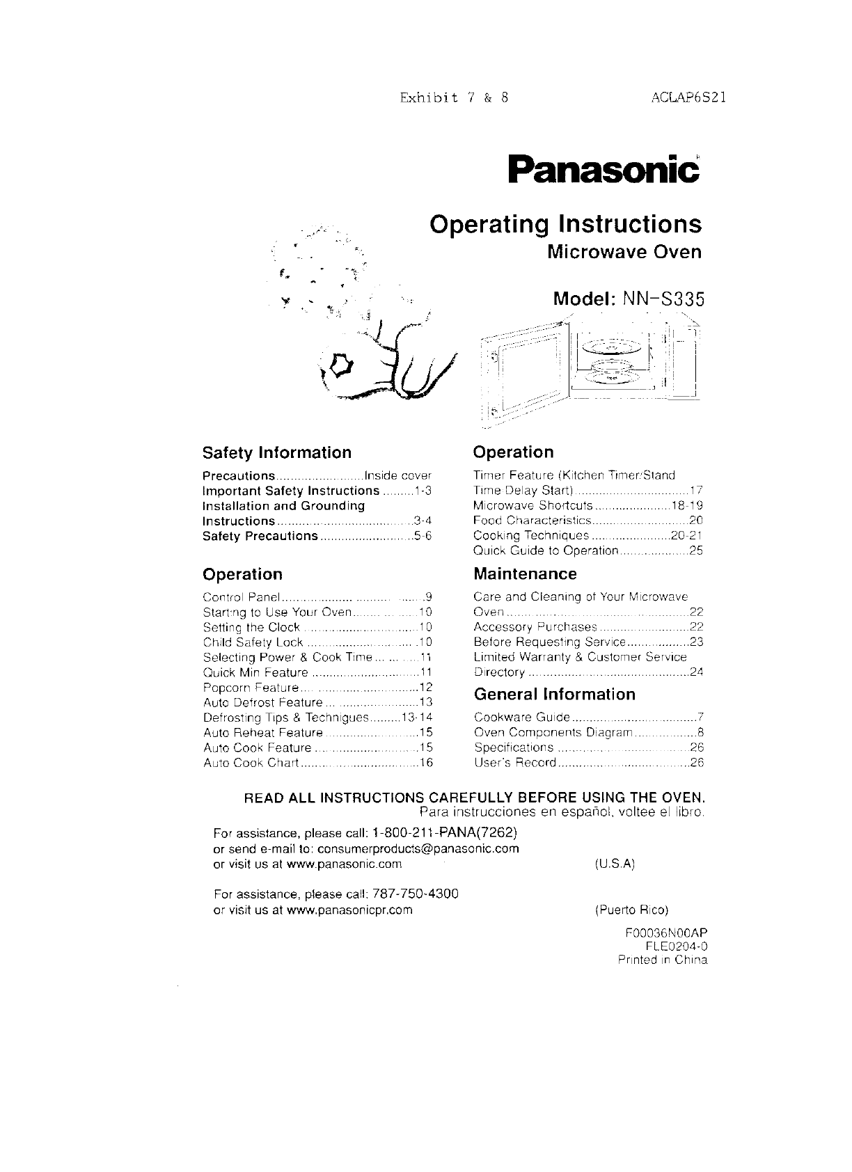 Panasonic of North America AP6S21 Microwave Oven User Manual Owners manual and Instructions