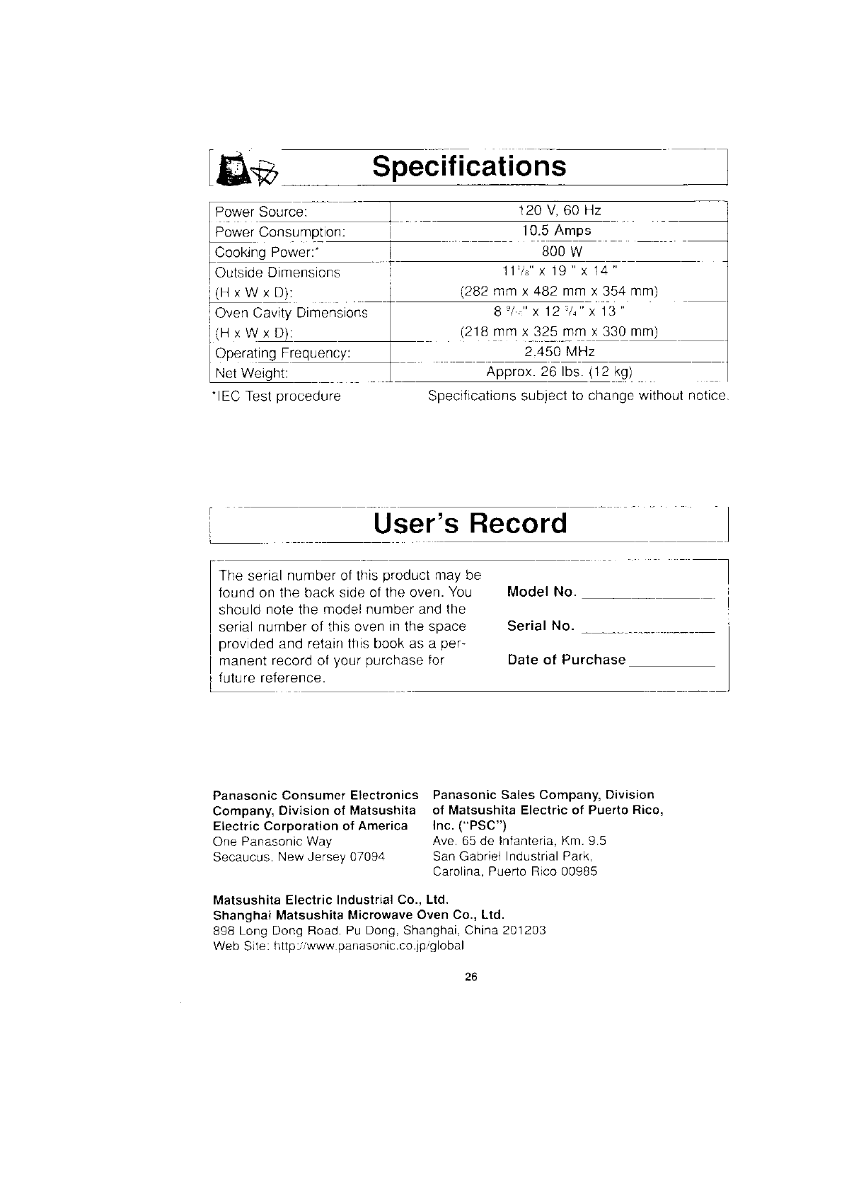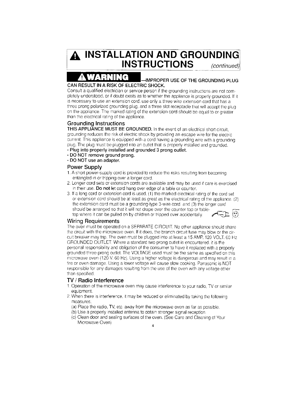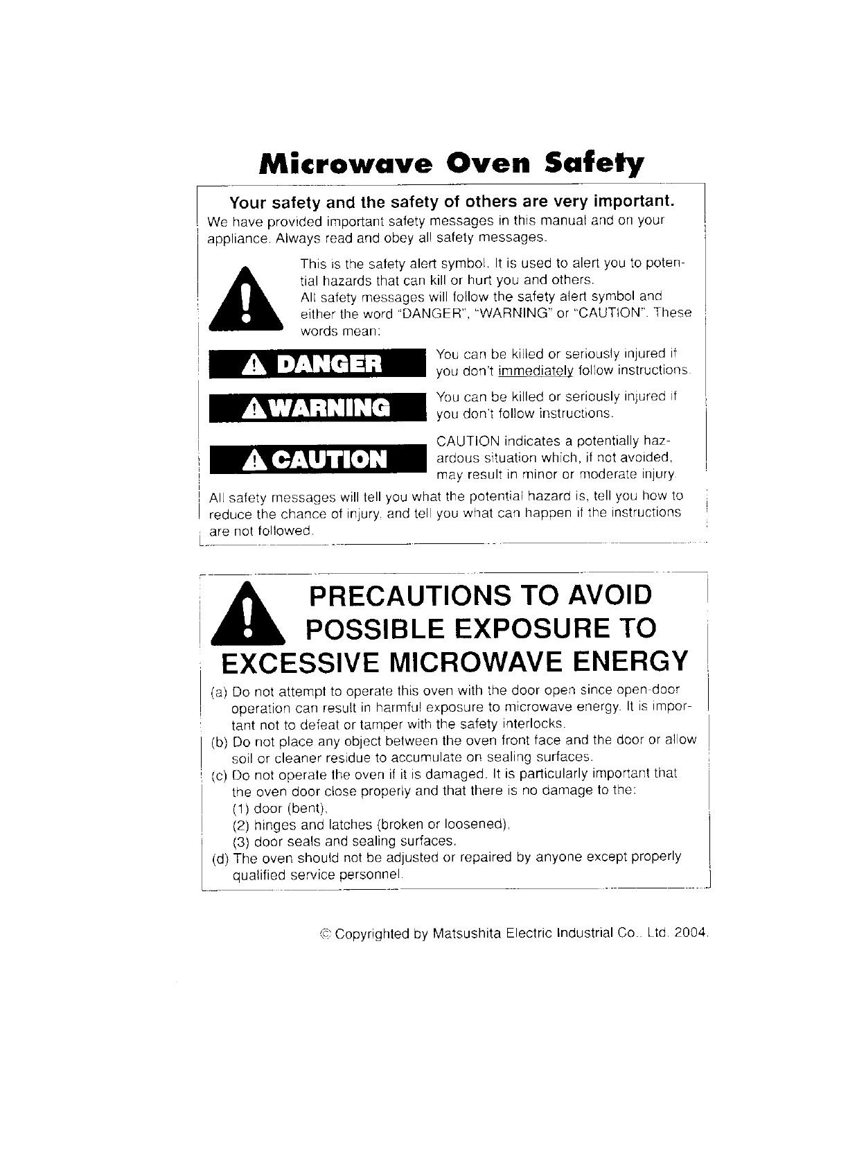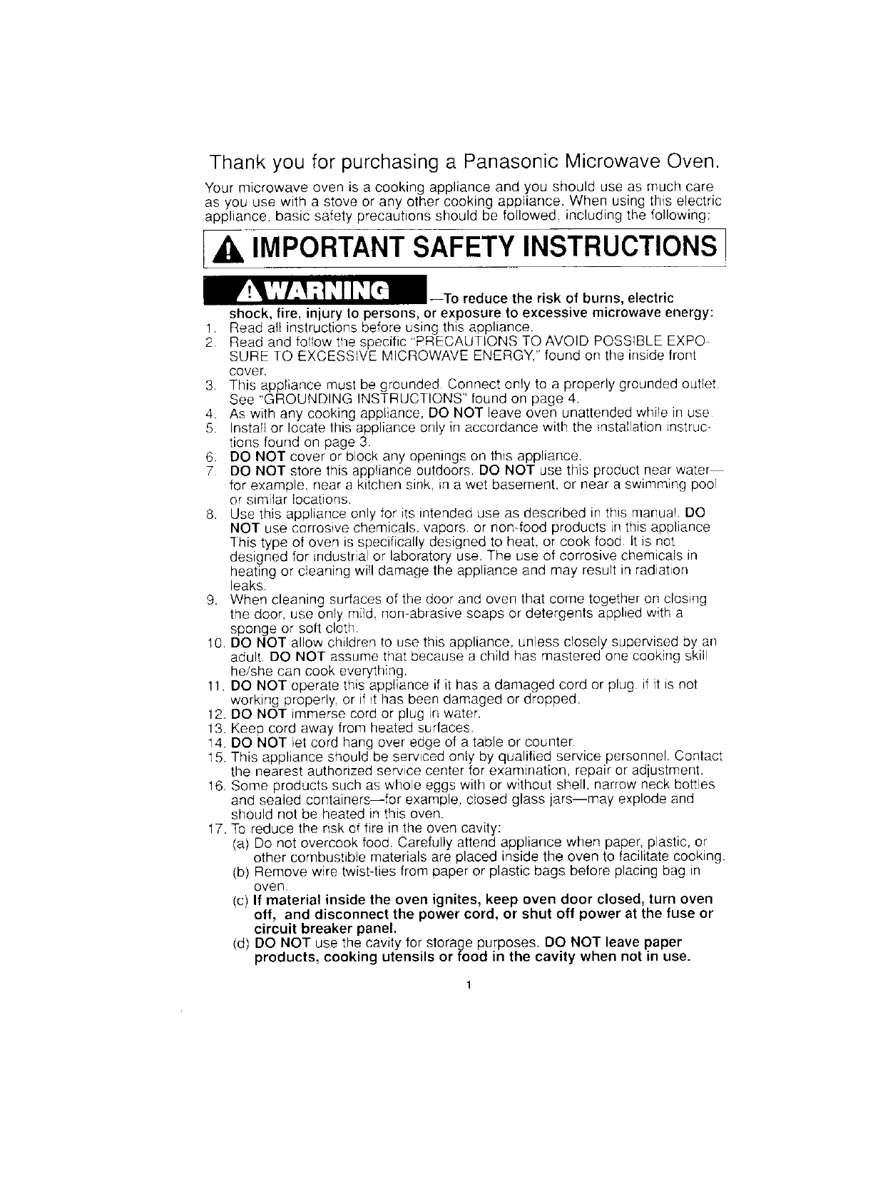 Panasonic Appliance Company of America Microwave Oven Owners manual and Instructions