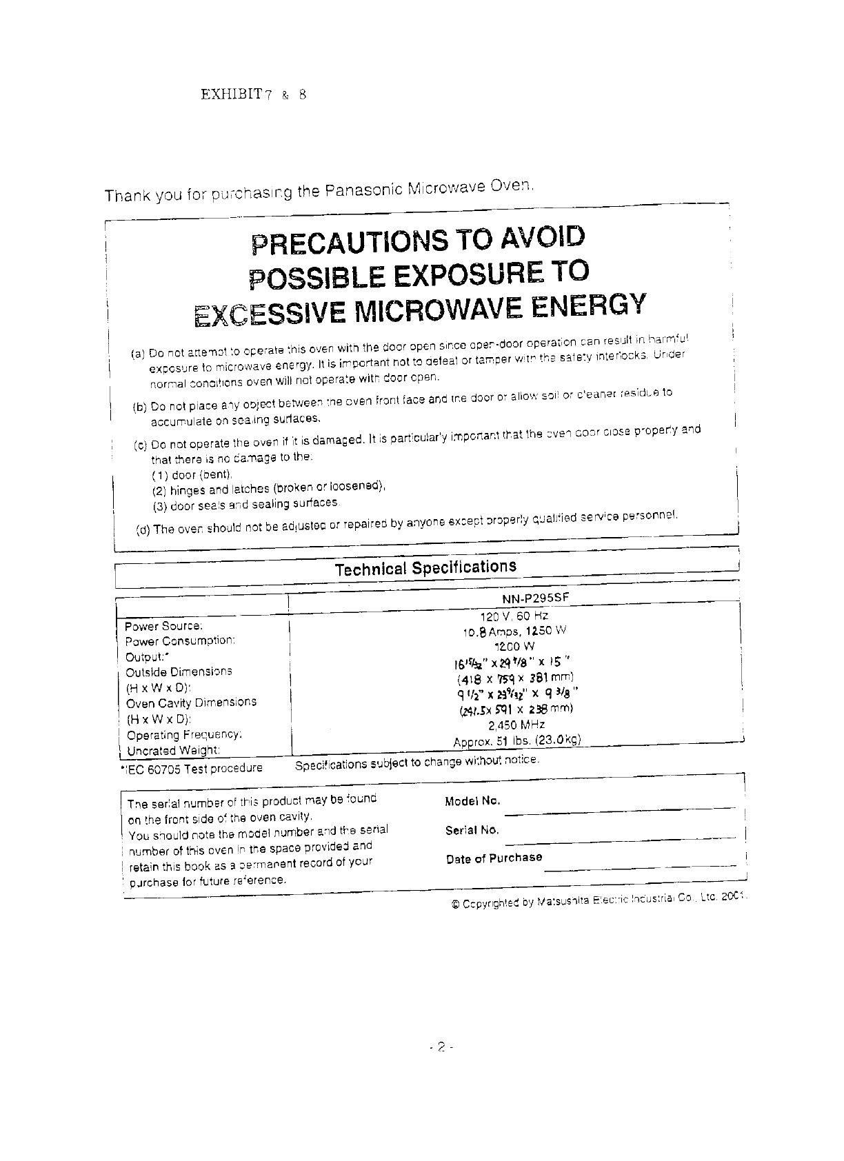 Panasonic of North America AP6Z01 Microwave Oven User Manual Users manual and Operating Instructions