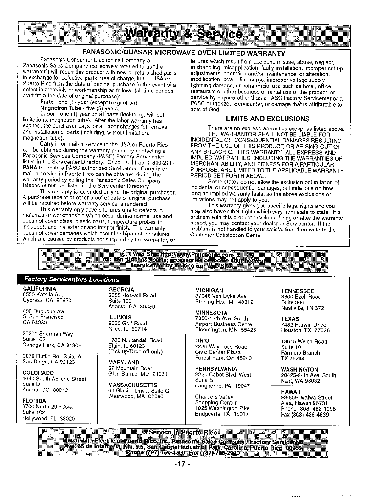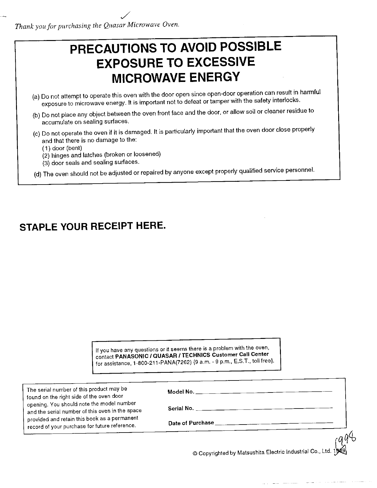 Panasonic of North America AP8251 Microwave Oven User Manual 8