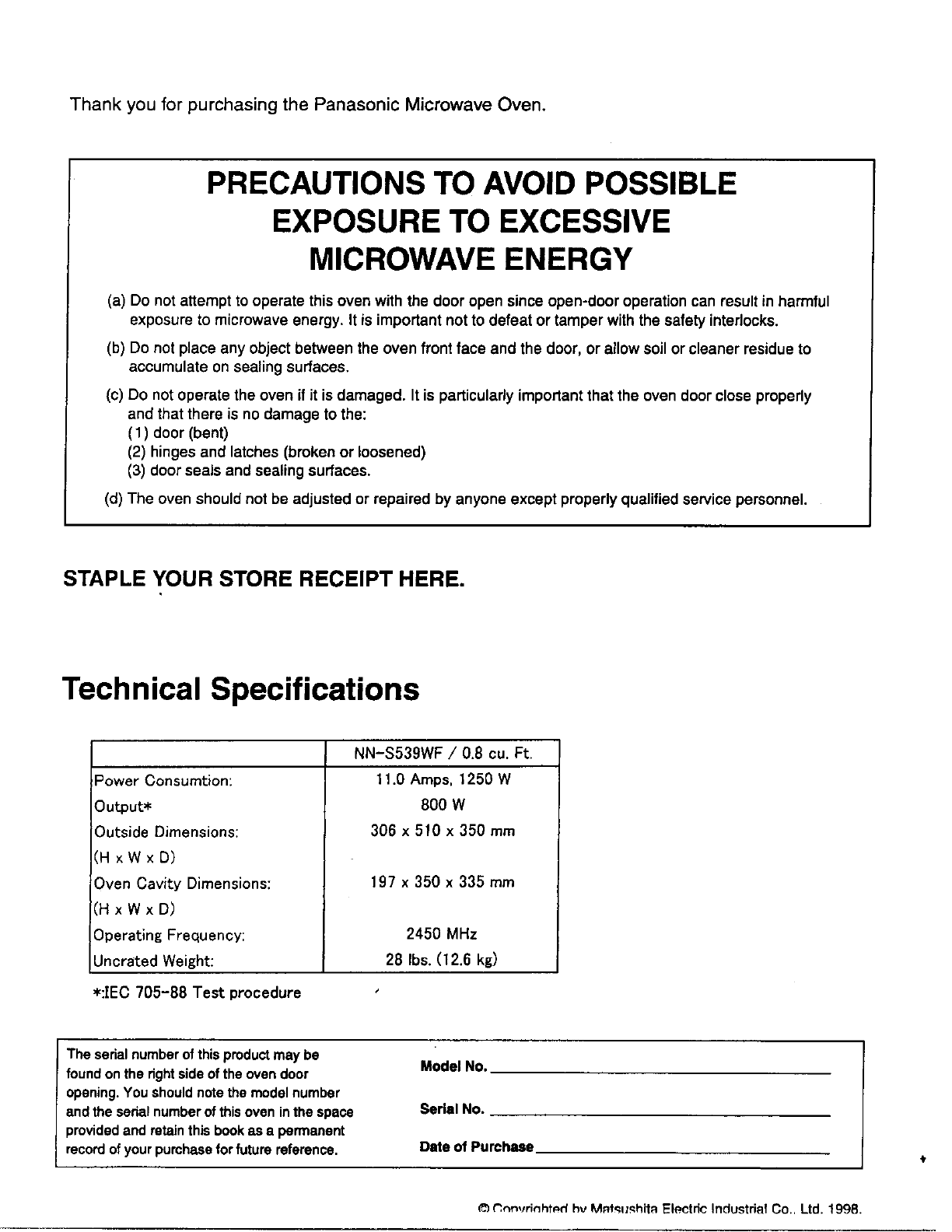 Panasonic of North America AP9661 Microwave Oven User Manual 24475