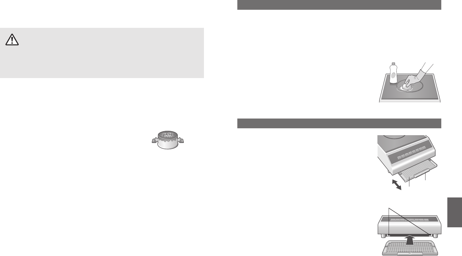 If splattered food or oil become scorched to the appliance, it will be difficult to