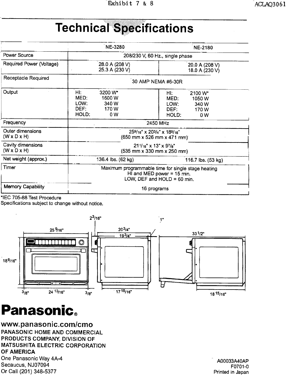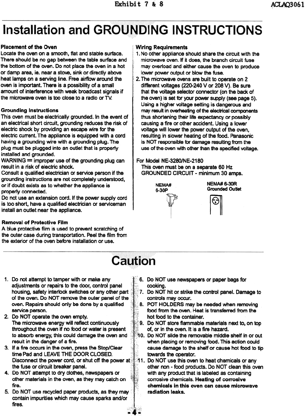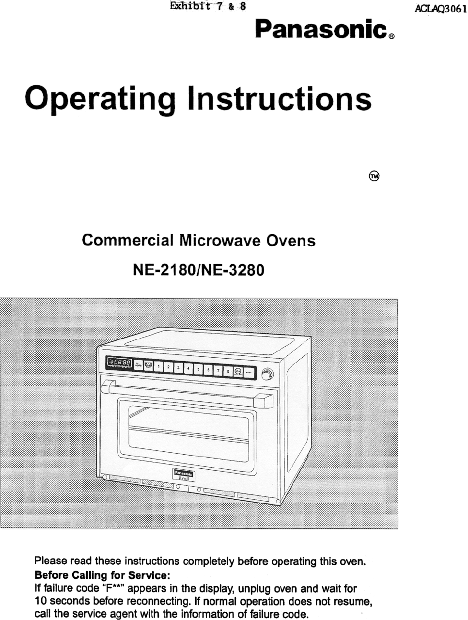 Panasonic of North America AQ3061 Microwave Oven User Manual Operating and Installation Instructions and Specs