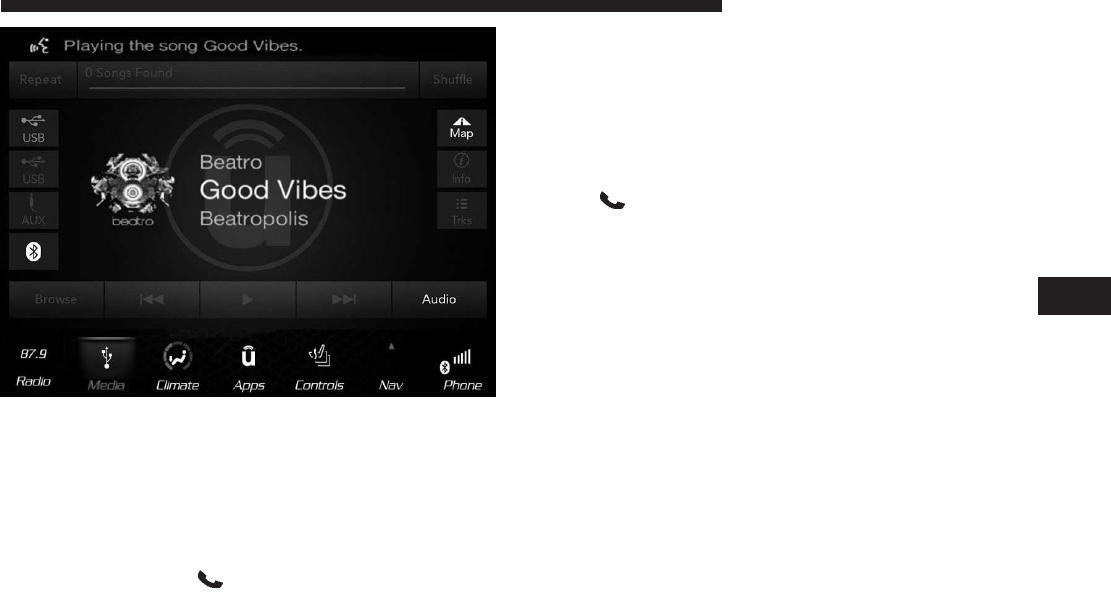 Uconnect offers connections via USB, Bluetooth and auxil-