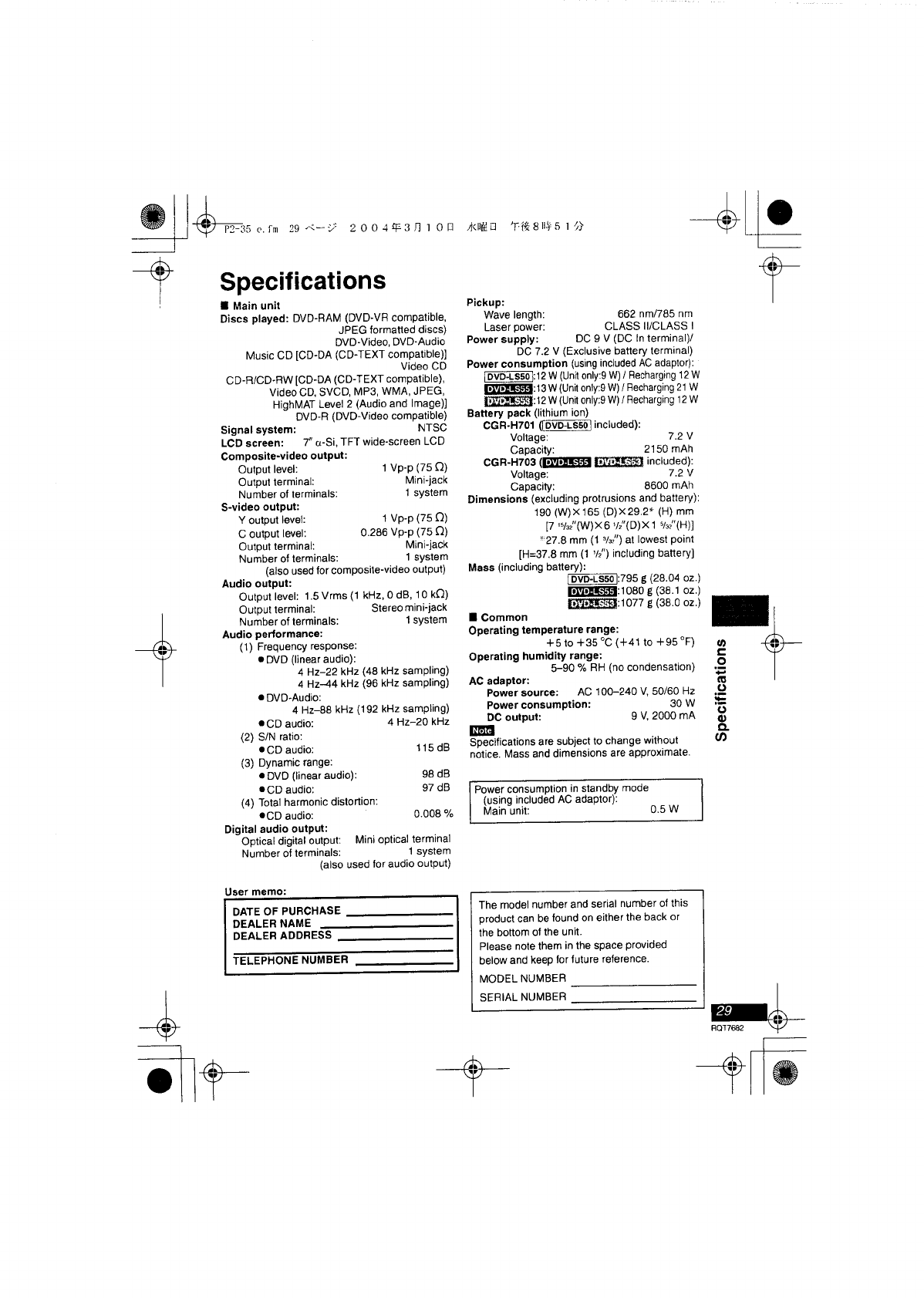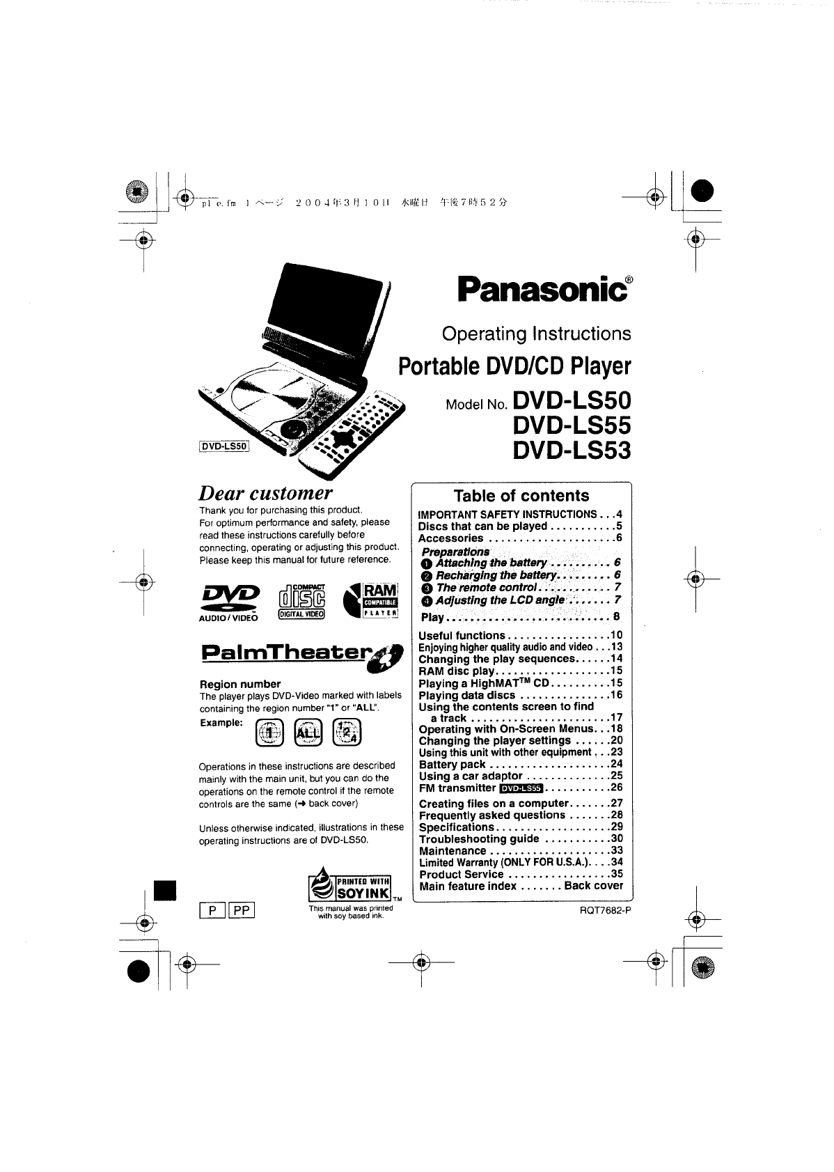 Panasonic of North America DVDLS55 Portable DVD/CD Player User Manual users manual