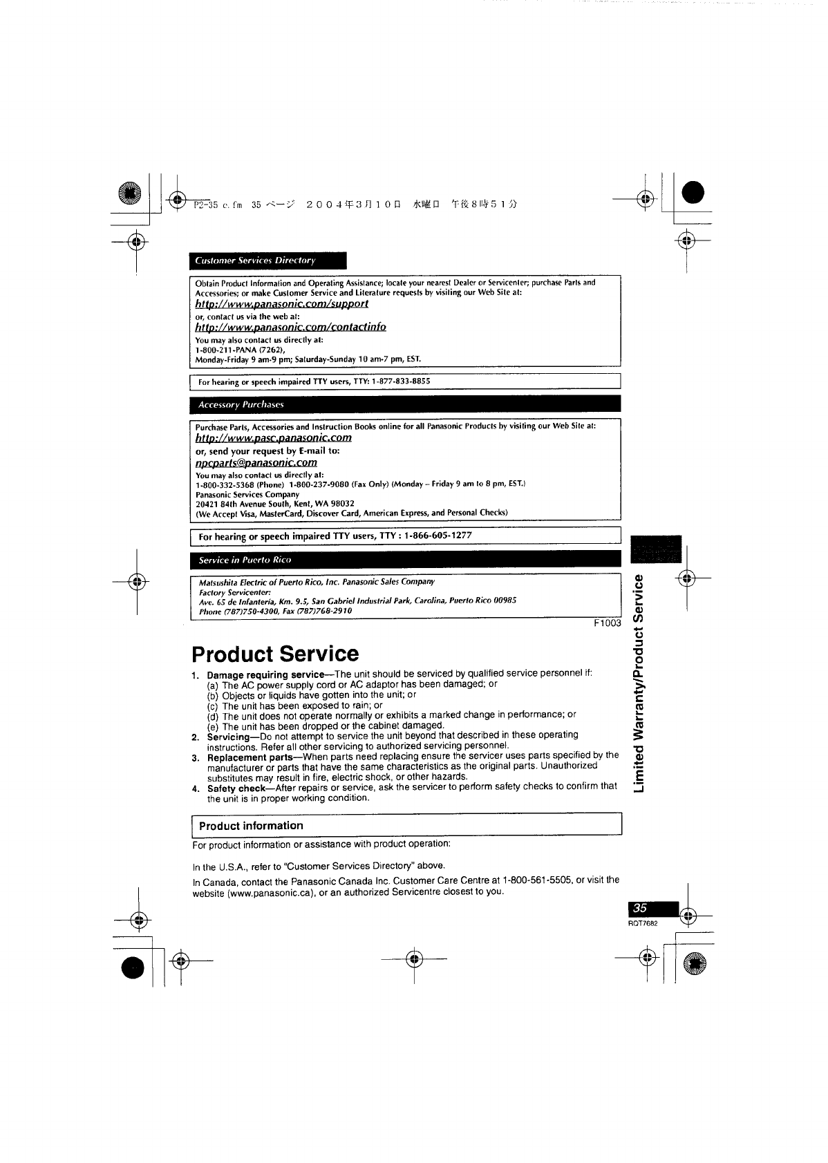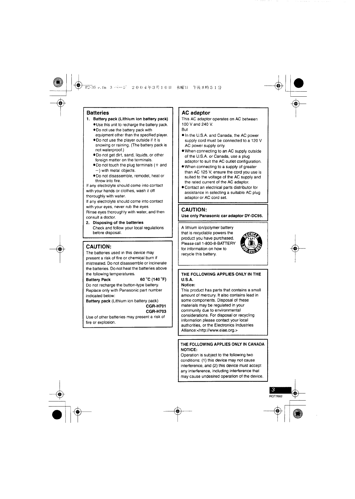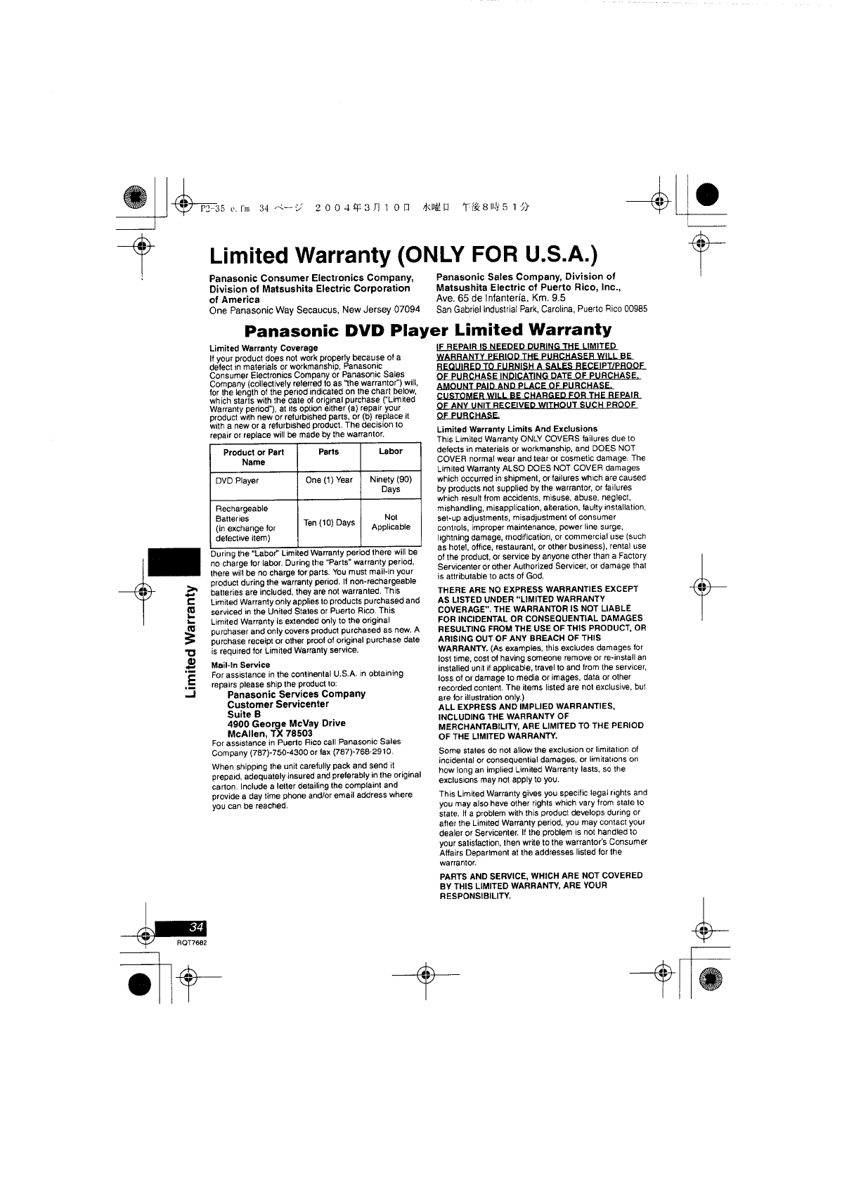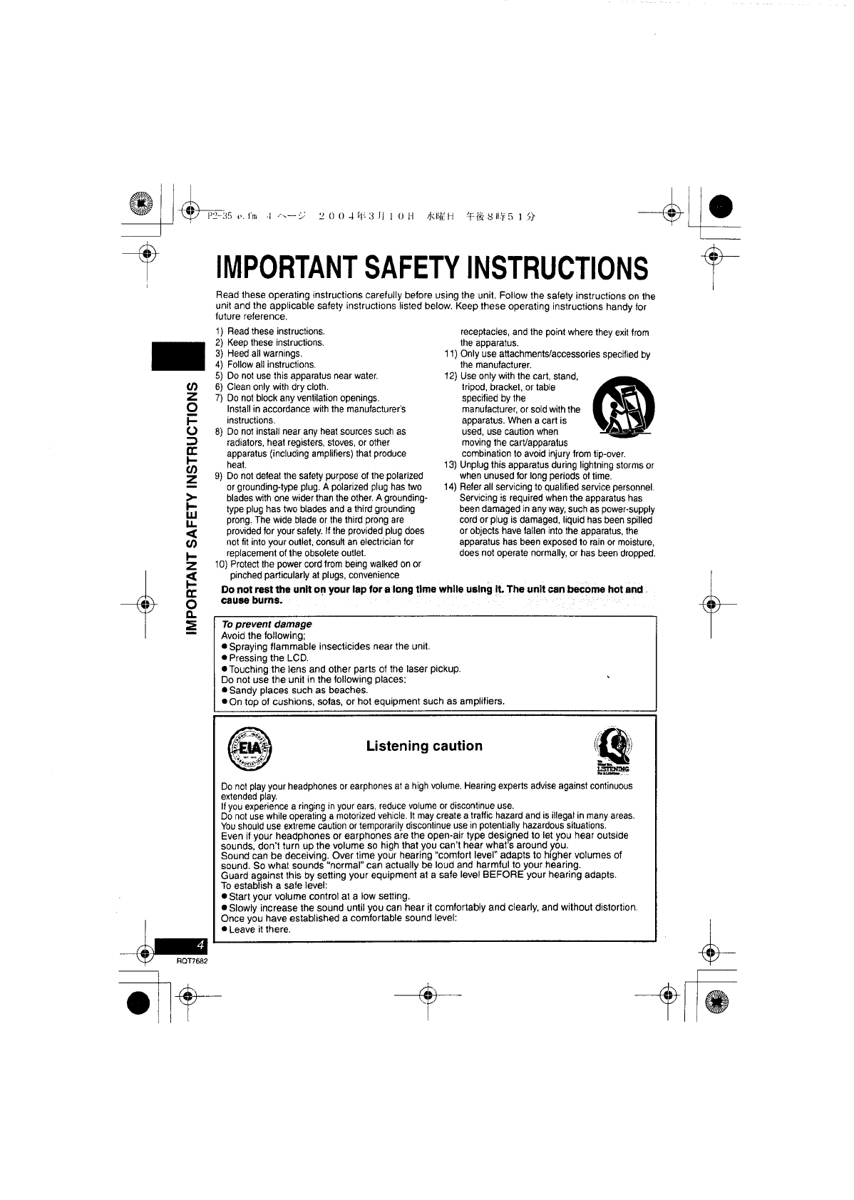 Panasonic Corporation of North America Portable DVD/CD Player users manual
