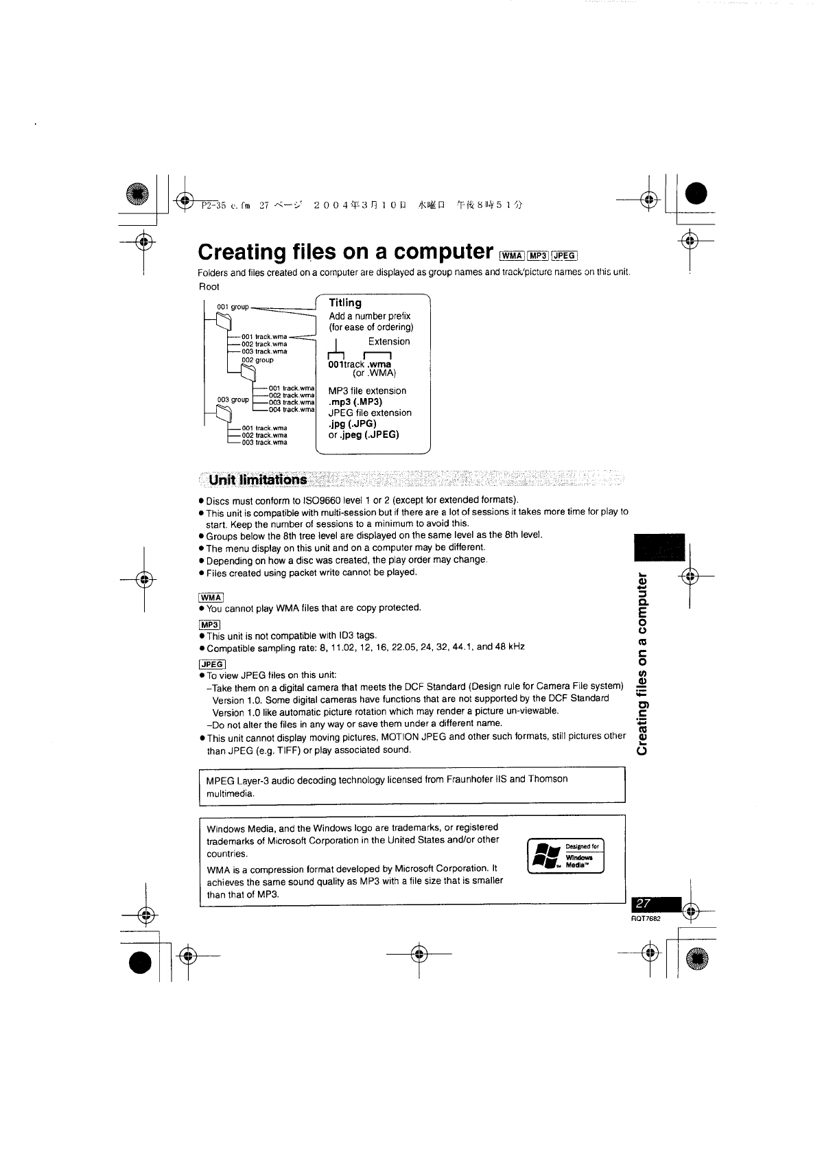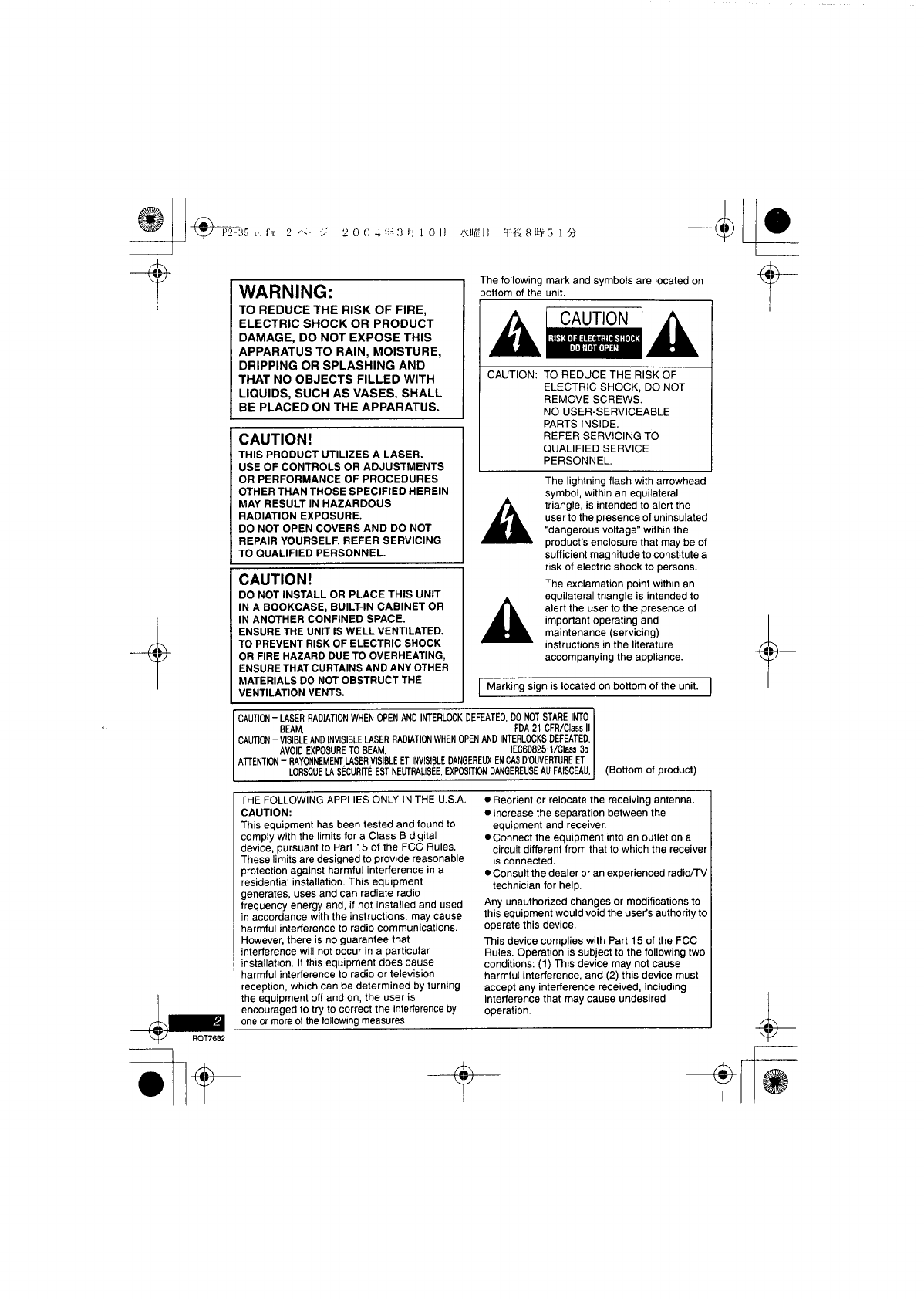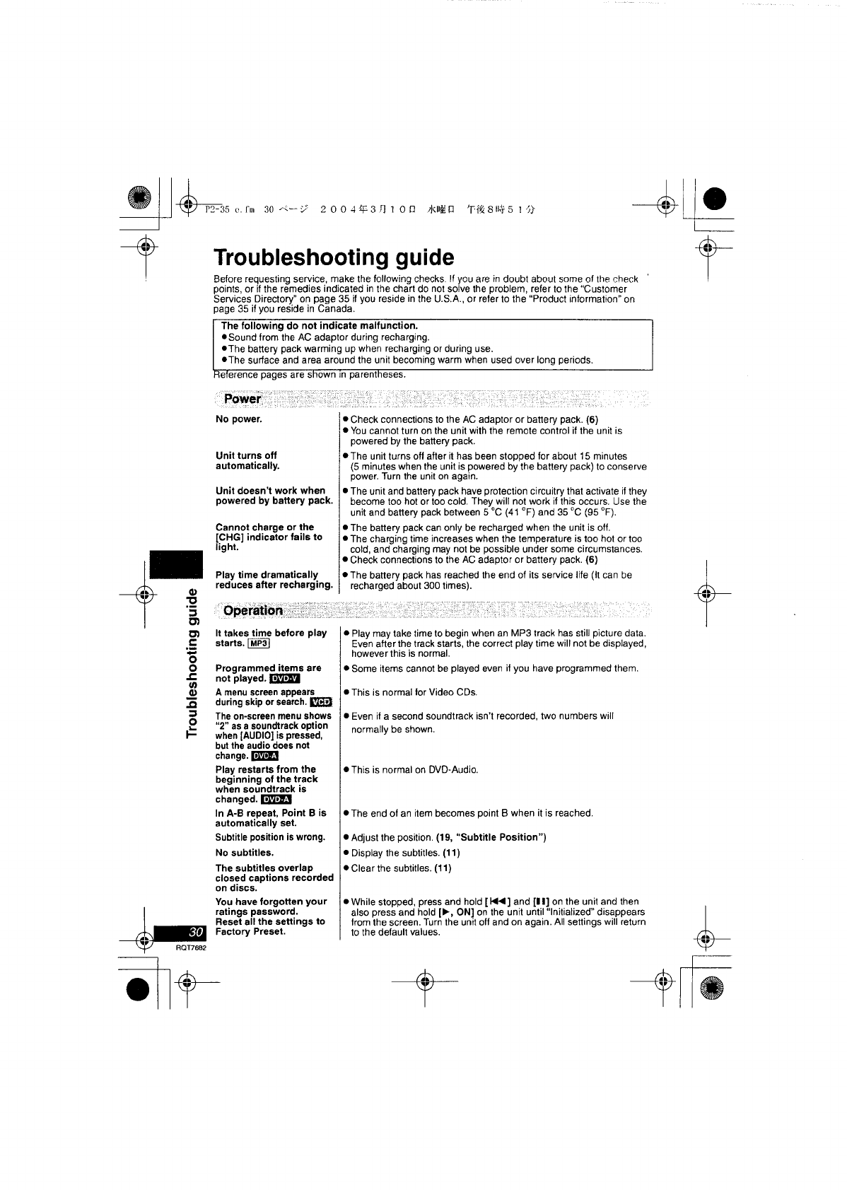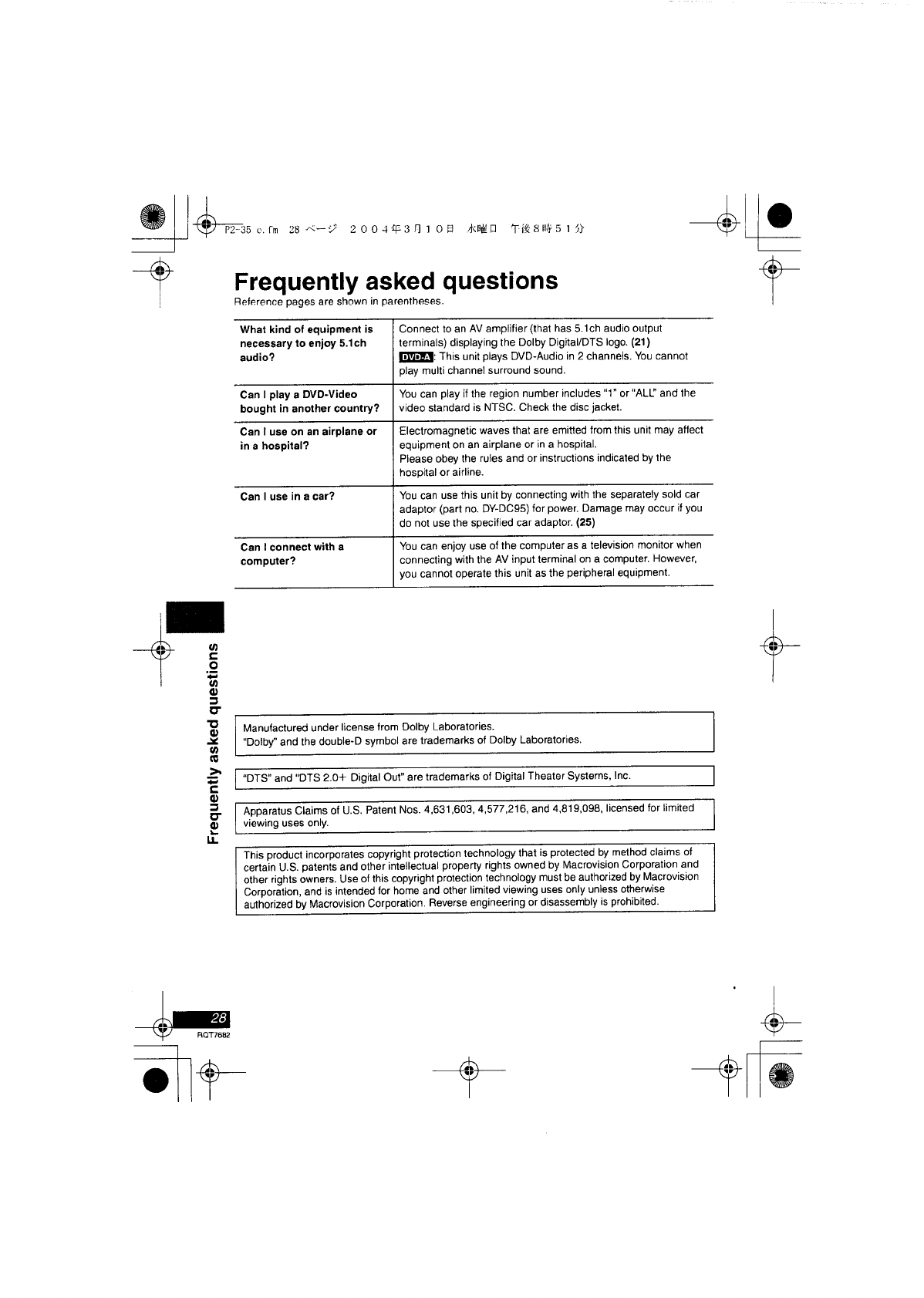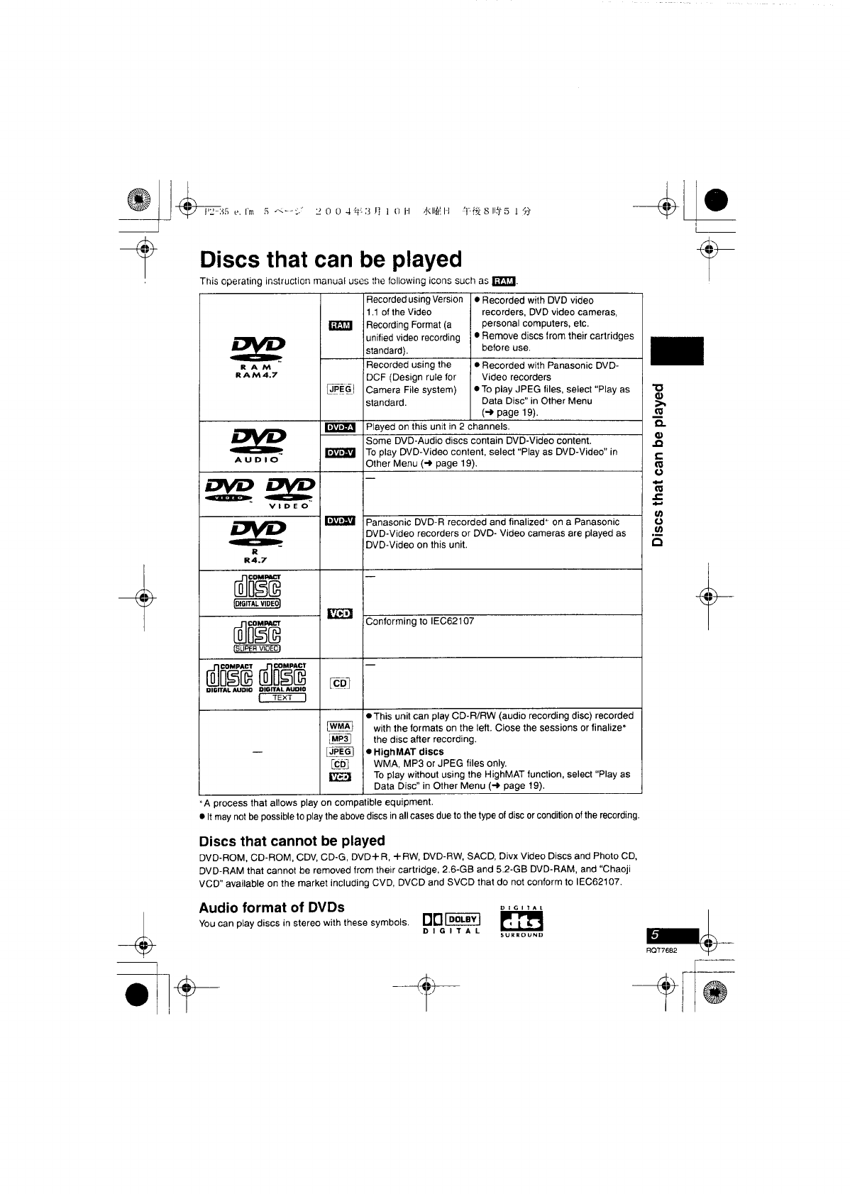 Panasonic Corporation of North America Portable DVD/CD Player users manual