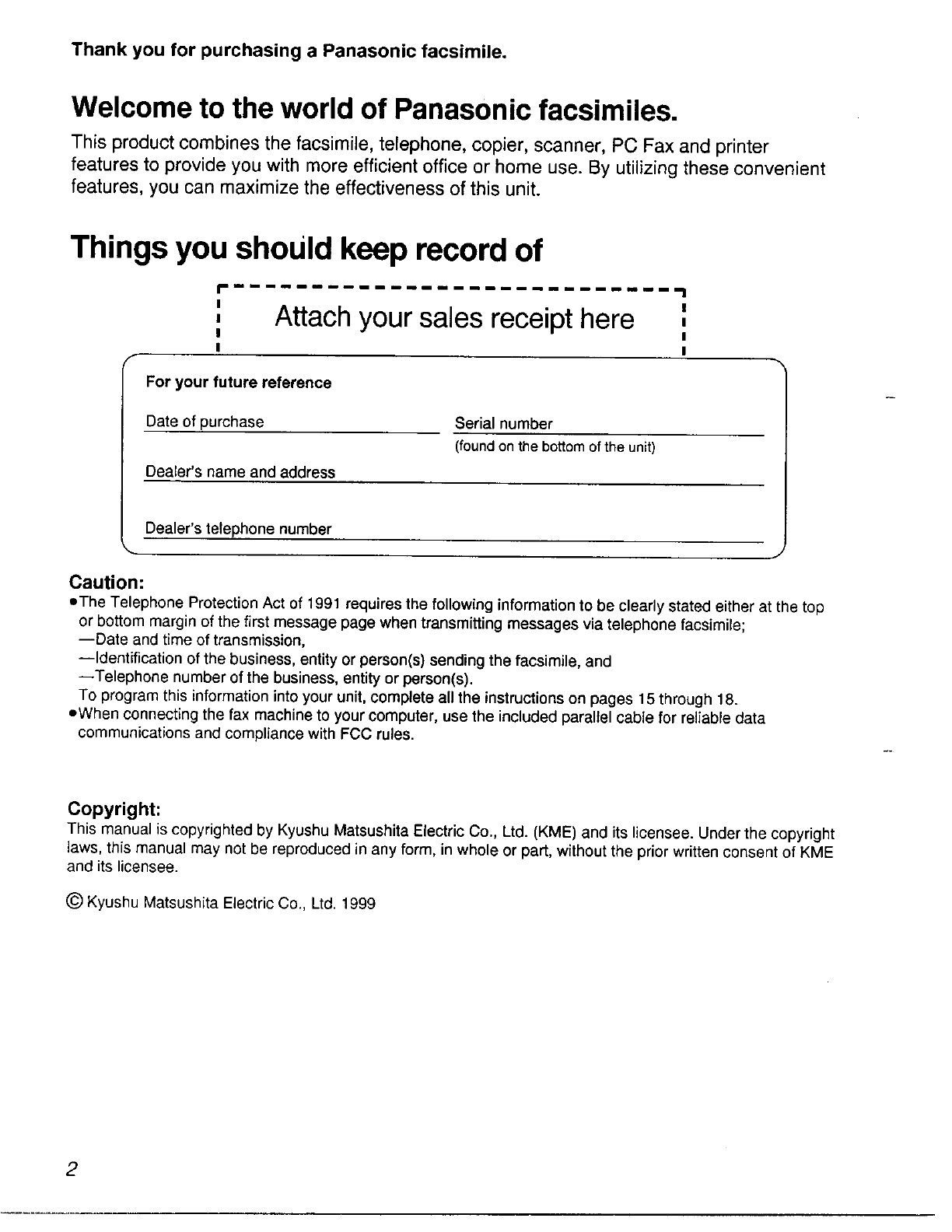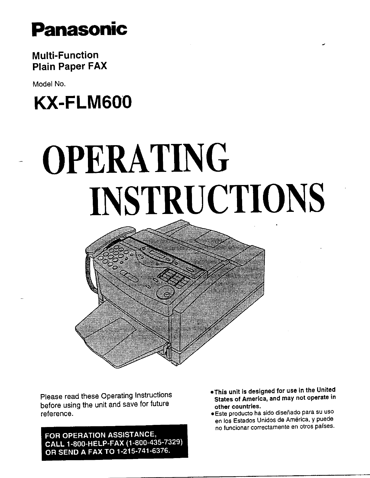 Panasonic of North America KM7KX-FLM600 Multi-function Facsimile with PC interface User Manual 8