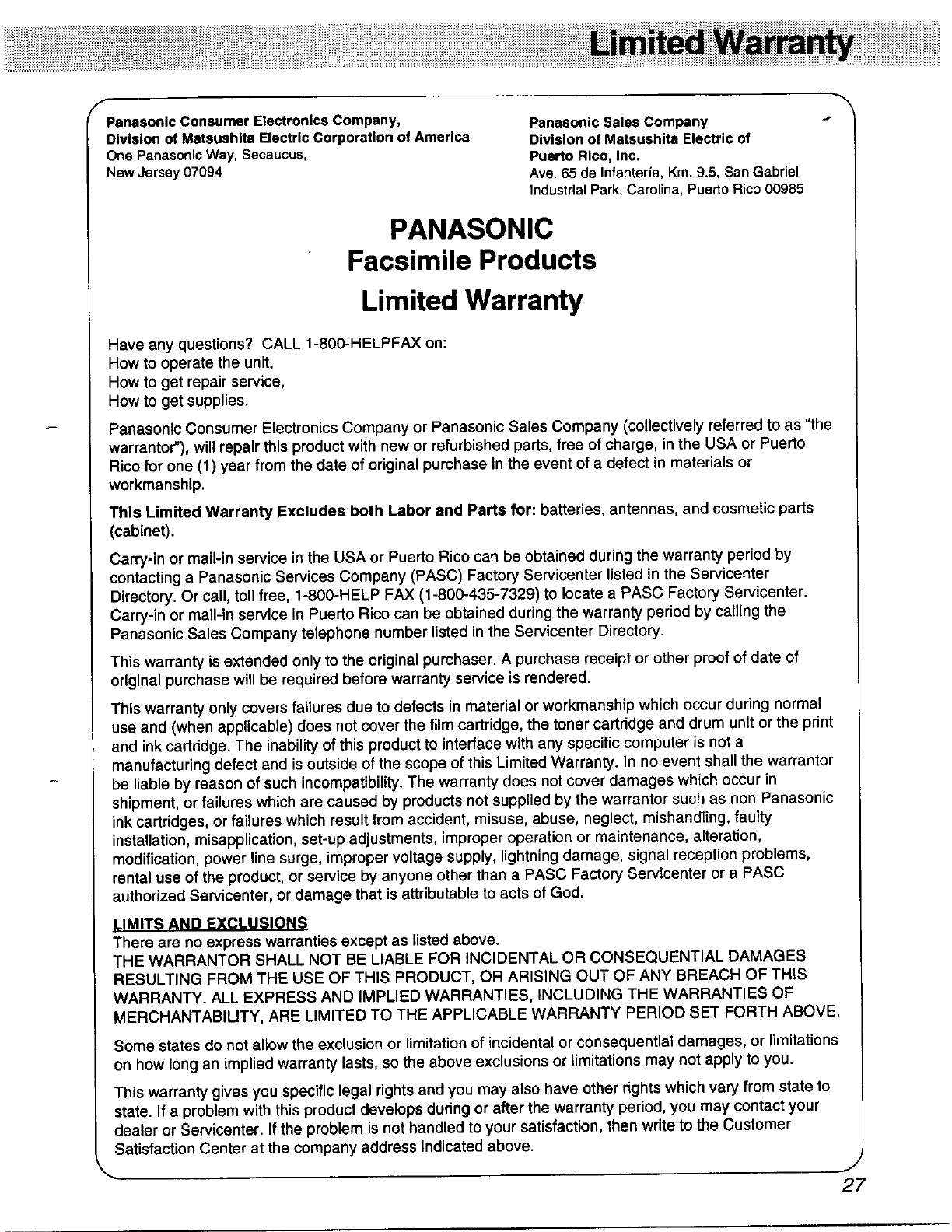 Panasonic Corporation of North America Multi-function Facsimile with PC interface 8