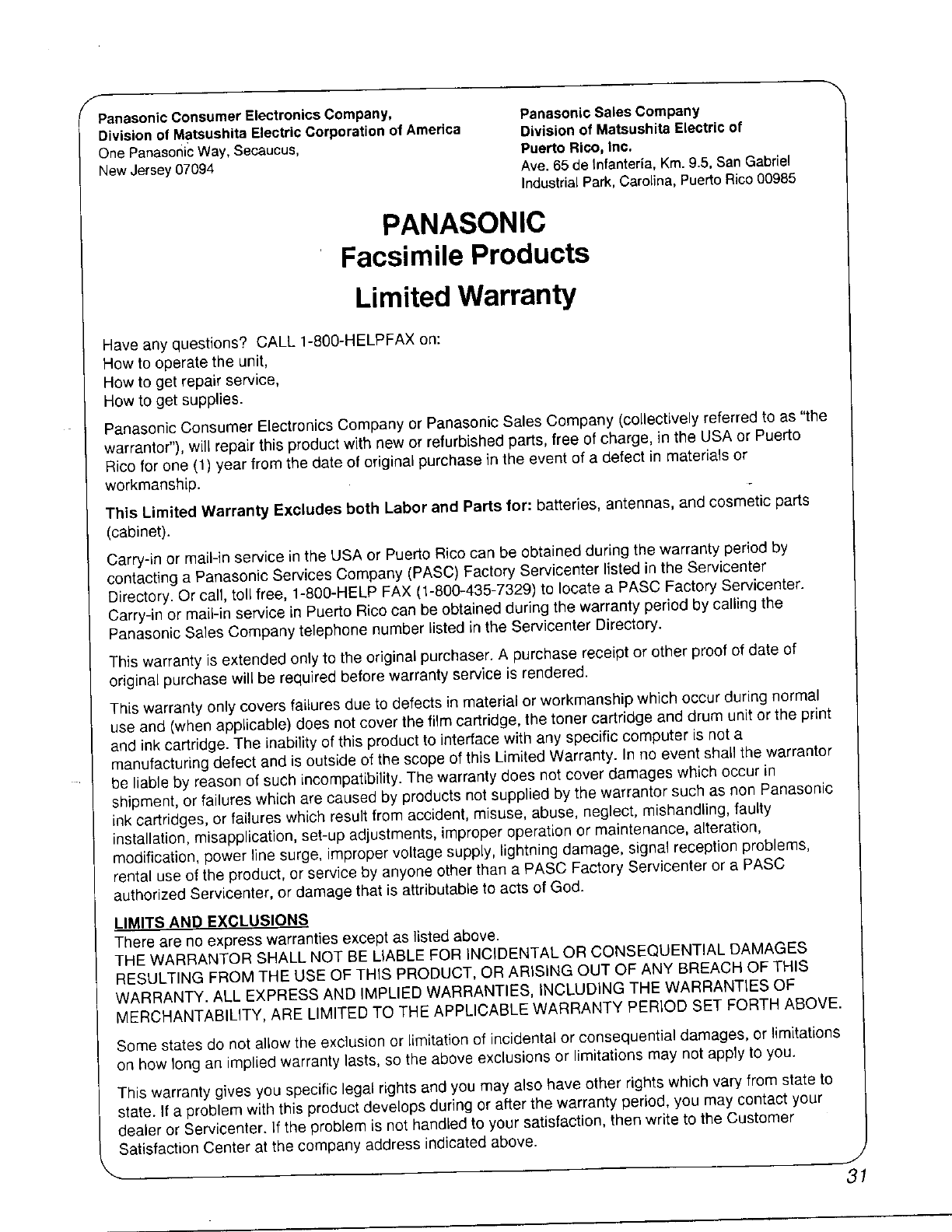 Panasonic of North America KM7KX-FLM650 User Manual 31002