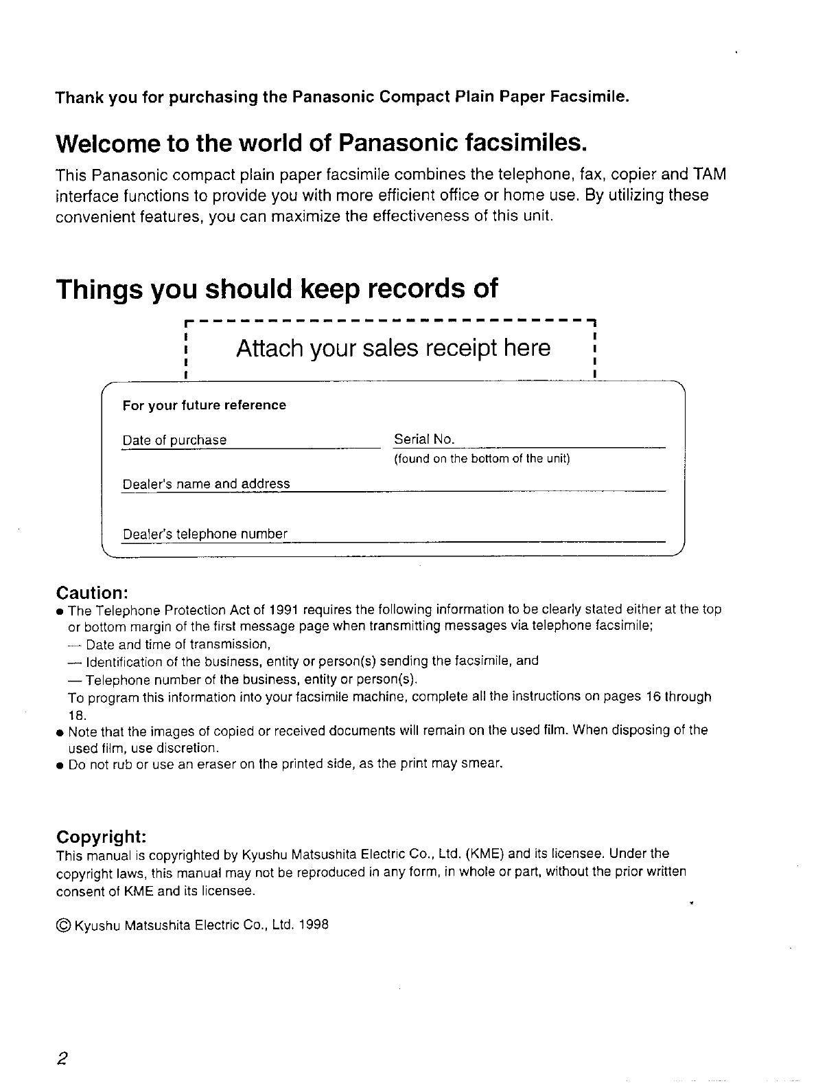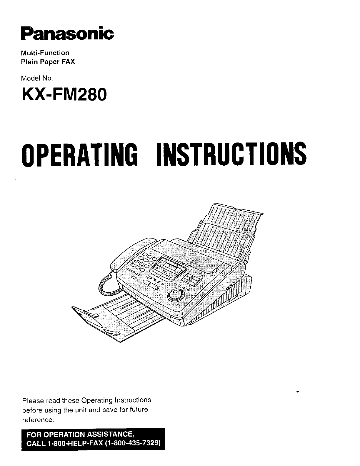 Panasonic of North America KM7KX-FM280 Facsimile Machine with Serial Port User Manual 43144